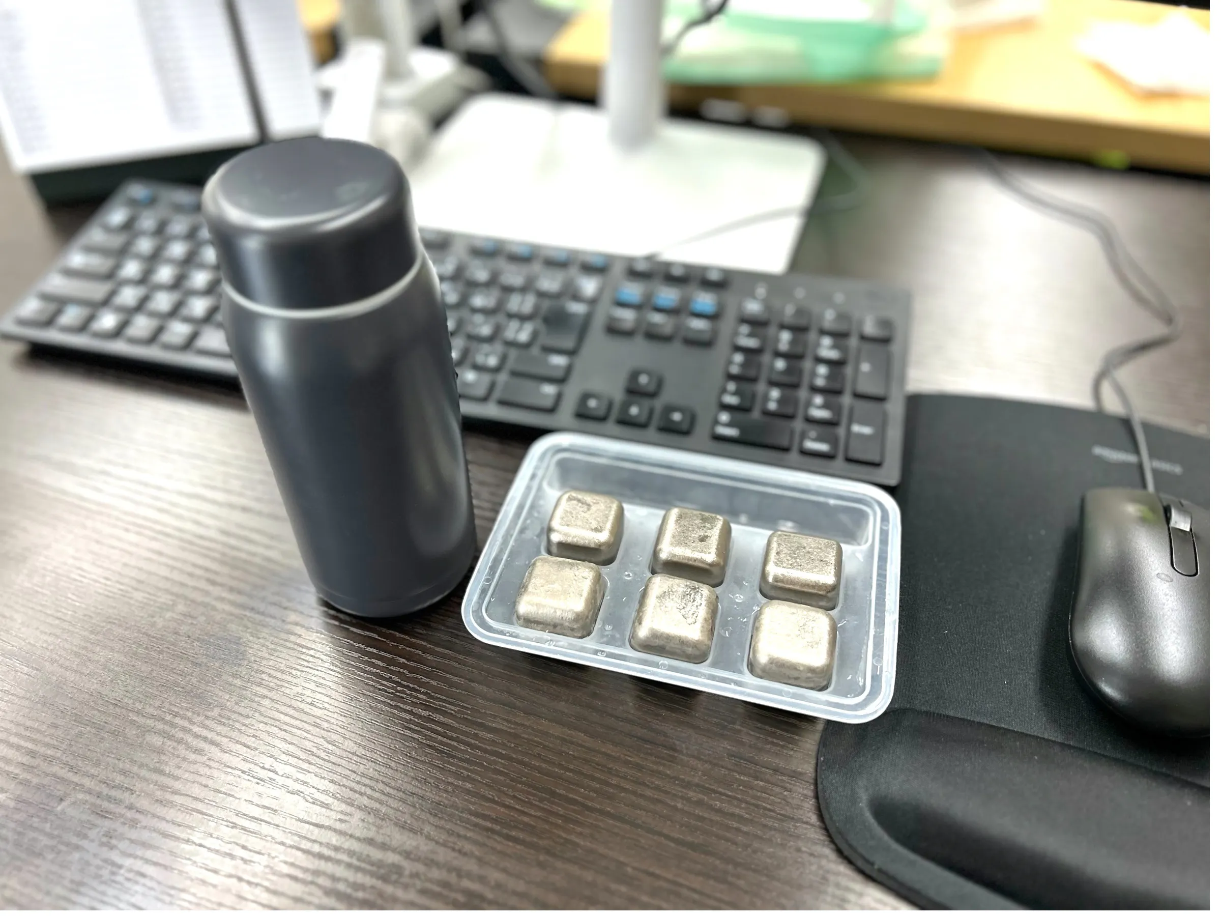 極氷を一緒に入れたら保冷力アップ!オフィスで水筒やマグカップに入れても便利です。