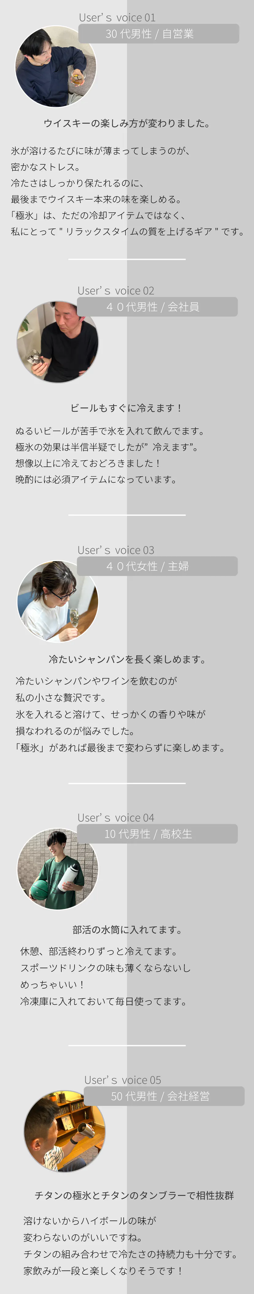 今回のチタン製アイス【極氷】も家呑みが大好きな当社社員の「氷が溶けるとお酒がまずくなる」という日常のほんの一瞬の気持ちから出来上がったプロジェクトです。