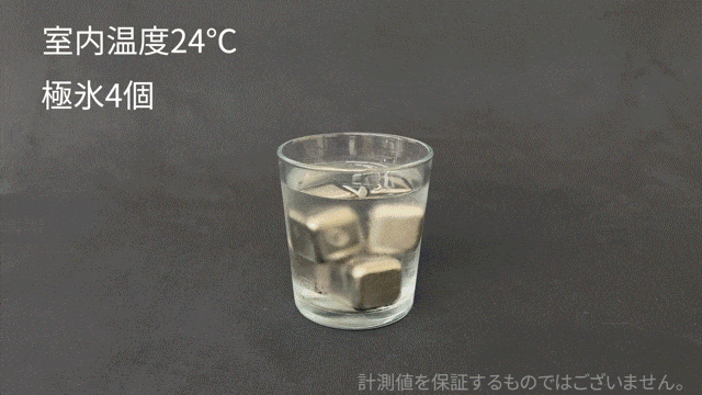 その常温水に冷凍庫で2時間冷やした【極氷】を4つ入れ