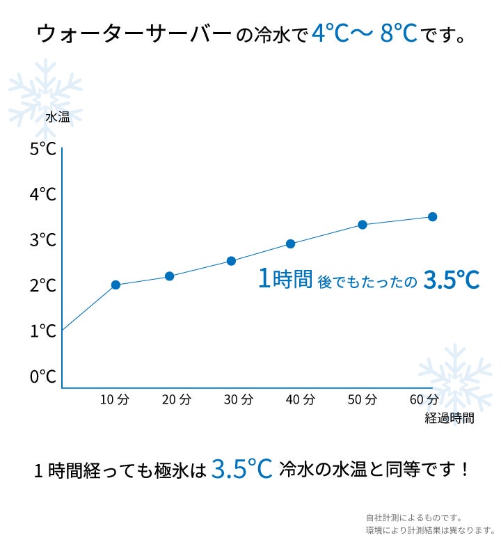 1時間経過後も4℃以下の冷たい温度を保つのが極氷です!