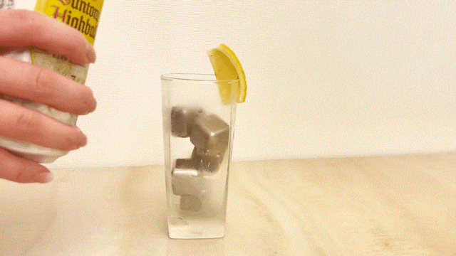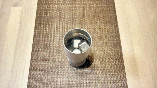 真空タンブラーに極氷を4つ以上入れて5秒~10秒程ステア(かき混ぜ)すると冷却、保冷効果をより発揮します!