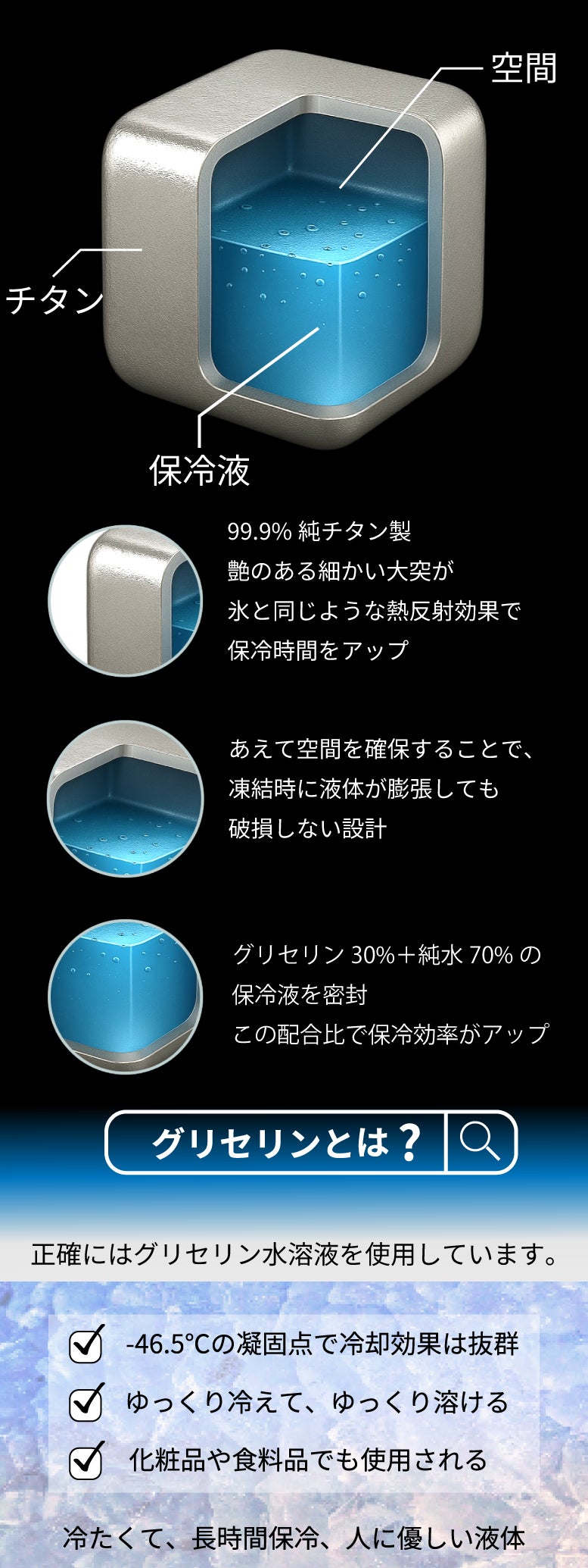 冷却保冷力・耐久性・匂い移りの問題を全てクリアにしてくれるのがチタン素材です!