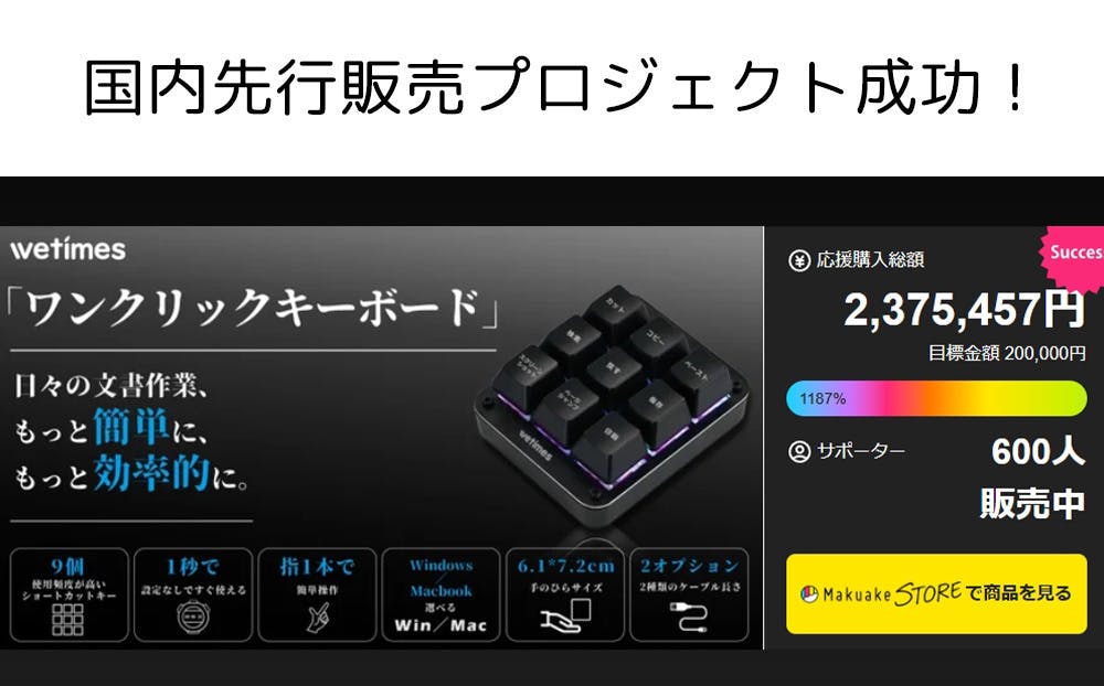 9つの操作をたった1つに実現した高速仕事ツールー「wetimesワンクリックキーボード」が登場しました。