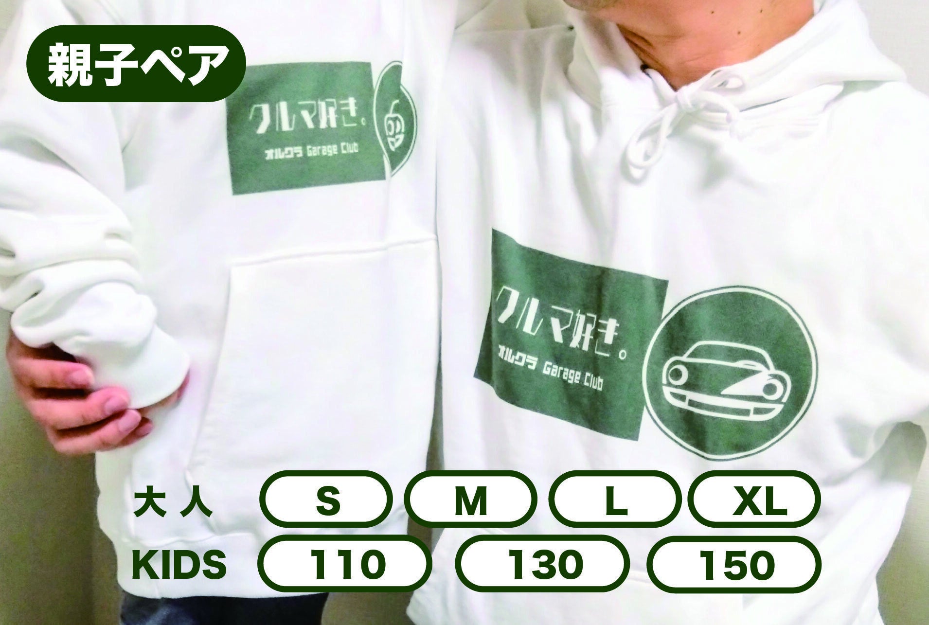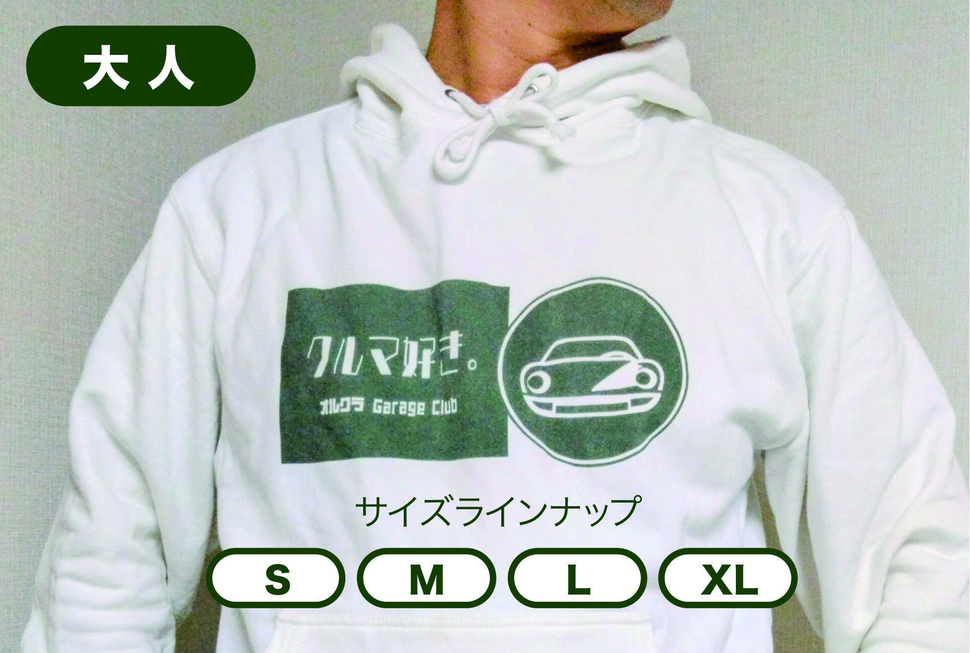 ⑨ オルクラ「クルマ好き」パーカー 大人用(S/M/L/XL)