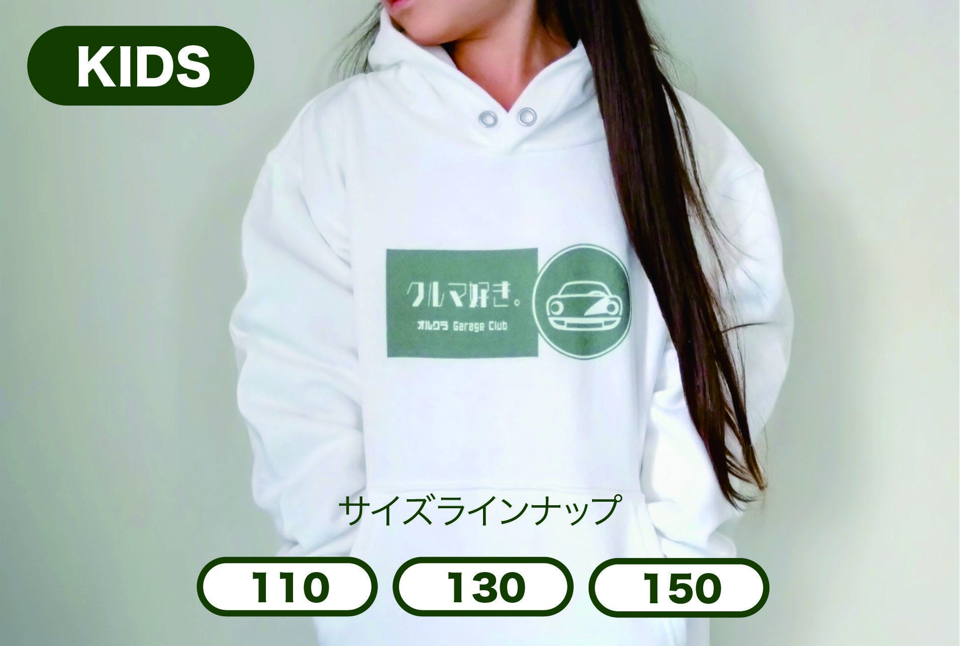 ⑩ オルクラ「クルマ好き」KIDSパーカー(110/130/150)