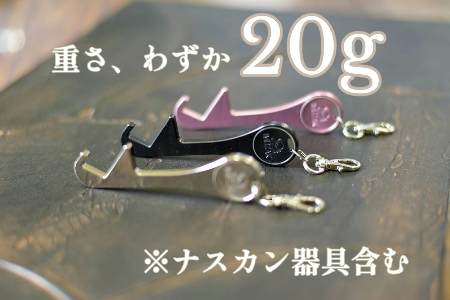 このスパナのような形状。スマホスタンドだとは思えない形。開発者である私もよく聞かれます。「これなんですか?」と。バッグにつけるとキーホルダーのようです。これがスマホスタンドだとは初めての方は誰も思わないでしょう。そんな驚きをご提供します。