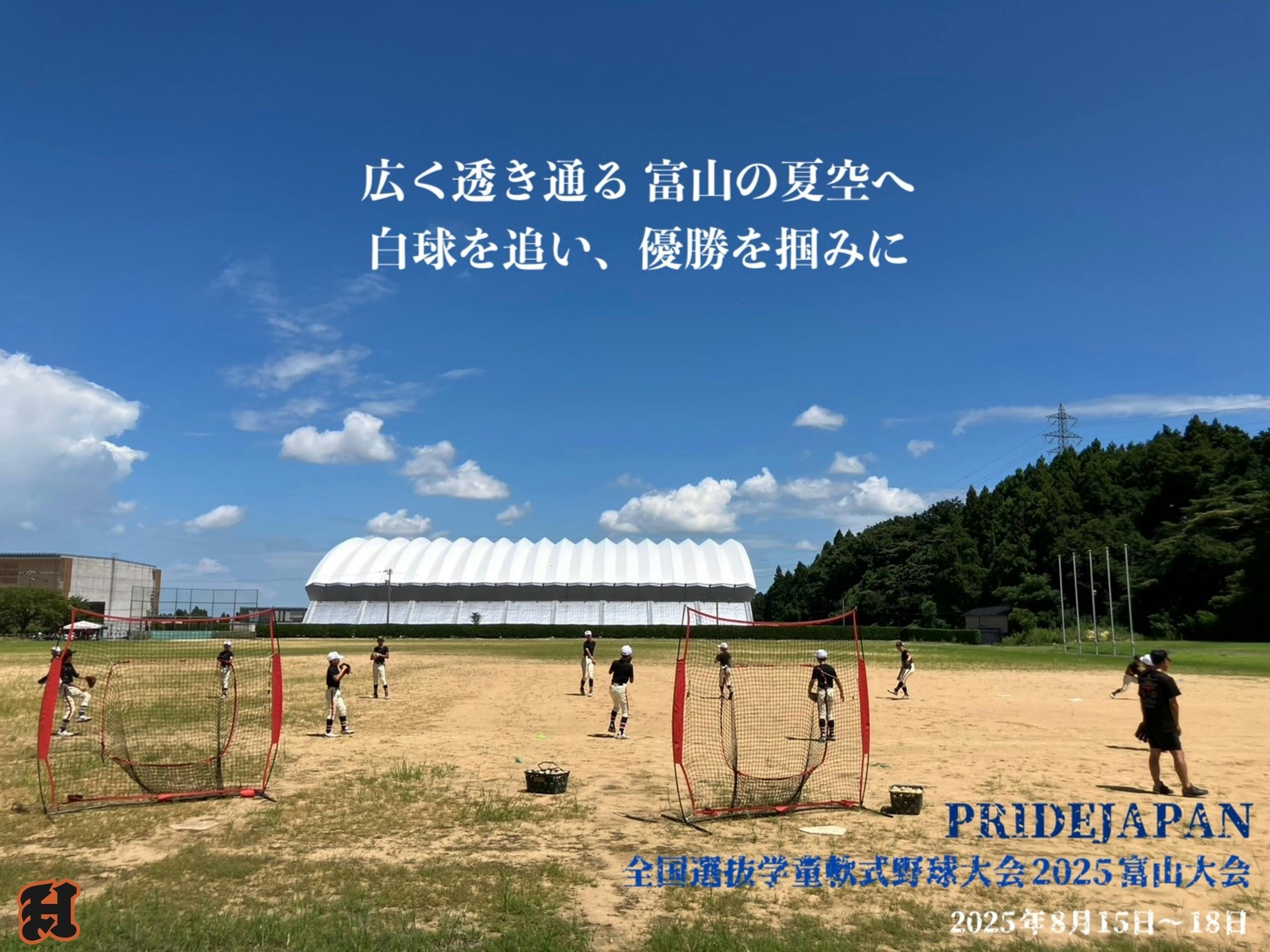本日は、掲題当チーム出場のもう1つの全国大会「PRIDEJAPAN全国選抜学童軟式野球大会2025富山大会」(2025年8月15日〜18日)の初日となり、早朝から小さいカラダに大きな荷物を背負って、まさにいま新幹線〜バスを乗り継ぎ現地へ到着し、入念に試合前準備をしています。