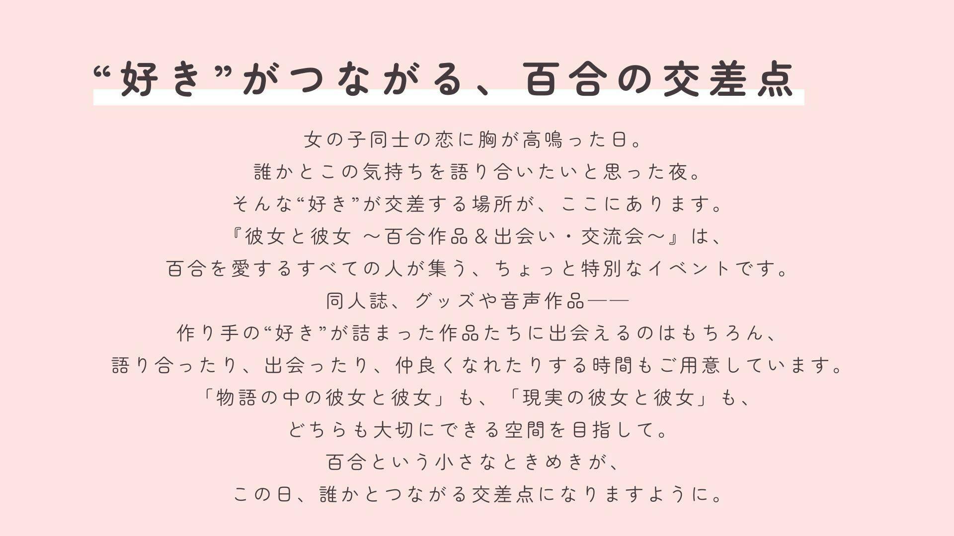 『彼女と彼女 〜百合作品&出会い・交流会〜』は、