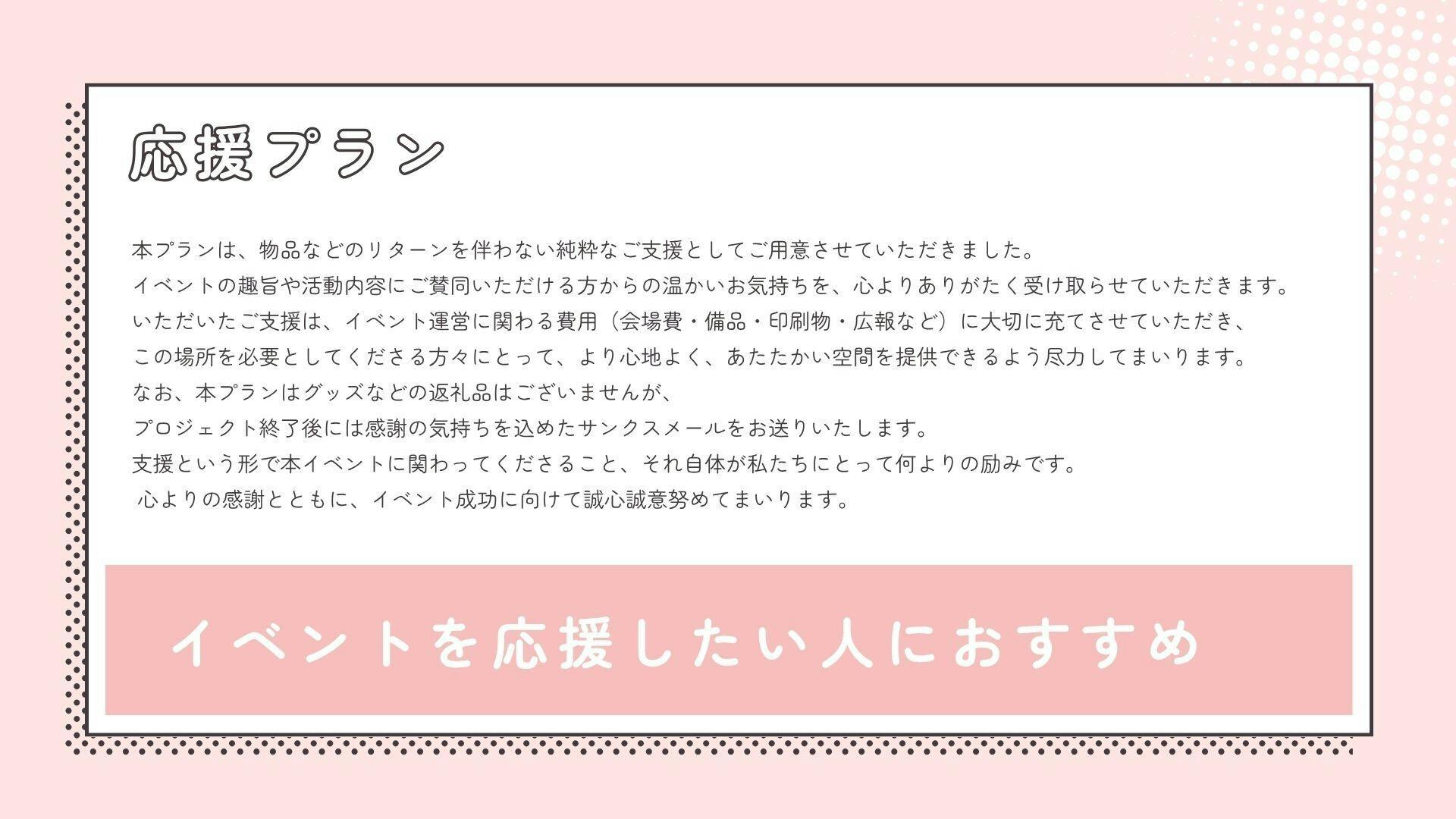 イベントの趣旨や活動内容にご賛同いただける方からの温かいお気持ちを、心よりありがたく受け取らせていただきます。