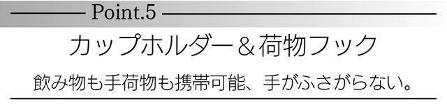 飲み物や手荷物がサッと収納でき、手ぶら感覚の移動が実現。