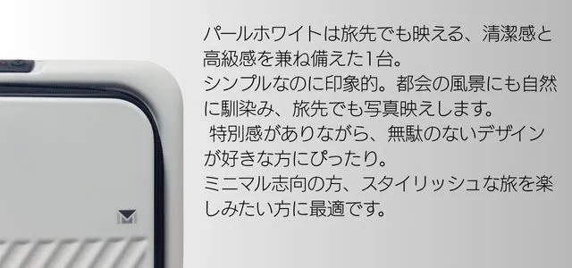 □パールホワイト:洗練された上品さ。旅先のコーデに映える人気色。