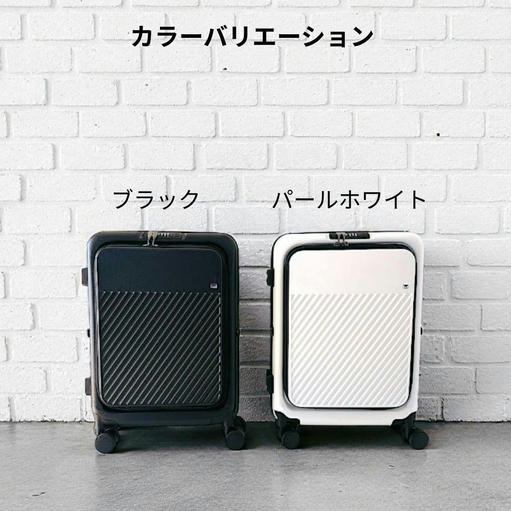 立てたままサッと開けられるフロントオープンを採用。新幹線や空港、ホテルのロビーなど、狭いスペースでも荷物の出し入れがスムーズ。移動中の荷物アクセスを圧倒的に快適にしてくれます。