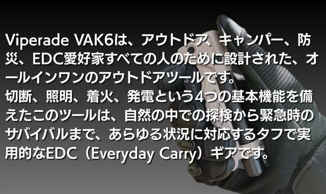 Viperade VAK6は、見た目のカッコよさだけでなく、アウトドアの現場、防災の最前線、予測不能なトラブルに、本気で立ち向かえるための“プロ仕様”で設計されています。