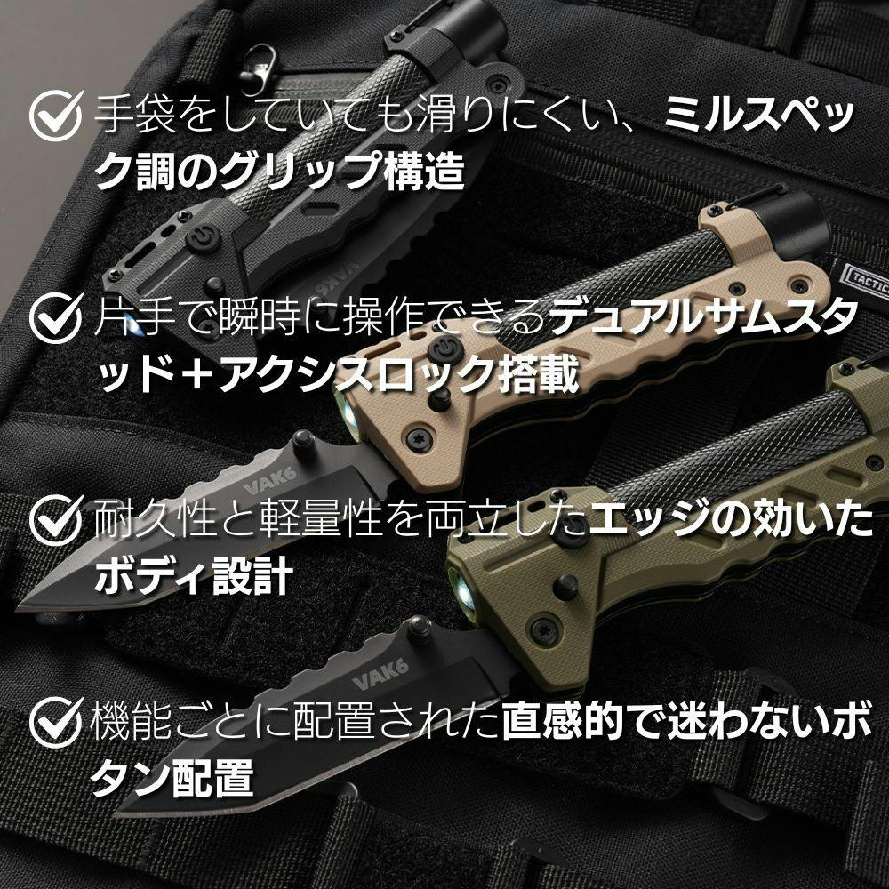 細部にまで妥協なく設計されたこのギアは、単なるマルチツールではありません。「必要なとき、確実に機能する」──それがVAK6の美学。