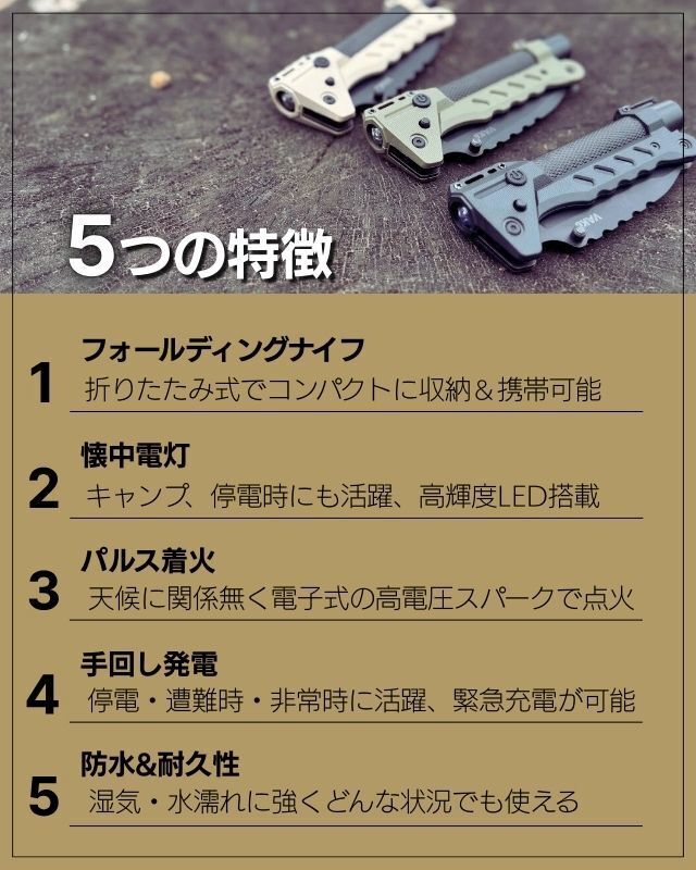 キャンプや登山の相棒として、サバイバルや災害時の備えとして。