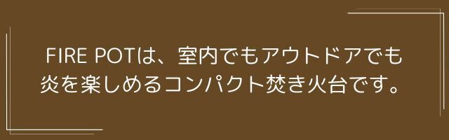 FIRE POTは、場所を問わず手軽に「炎の癒し」と「特別な時間」を作り出し、日常の中に豊かさと楽しみをプラスするアイテムです!
