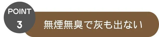 A:通常使用において煙や、燃えカス、臭いが出にくい仕様となっております。