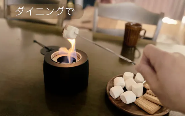 食卓を囲みながらマシュマロを焼いたり簡単な調理も楽しめます。