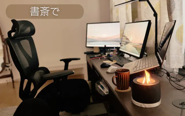 炎を眺めることで心が落ち着き、集中力や創造力が高まります。炎の光が適度な癒しを与え、仕事や勉強の効率アップにもつながります。