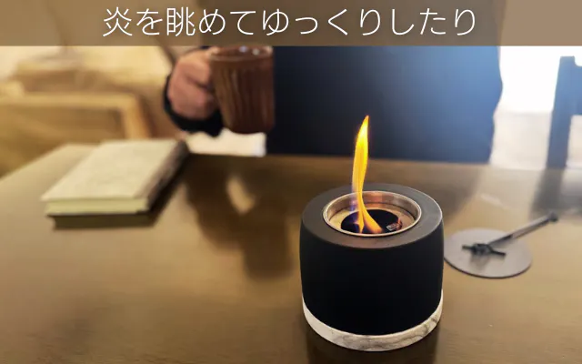 炎のゆらめきを見つめていると心が落ち着き、禅や瞑想でいう「いまここに集中する」という感覚を体感できます。