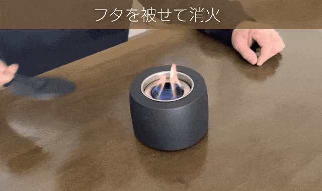 消火フタを被せると一瞬で消火します。