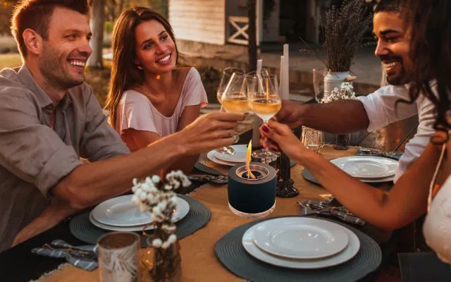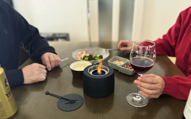 食卓を囲みながら炎の光が特別な雰囲気を演出します。