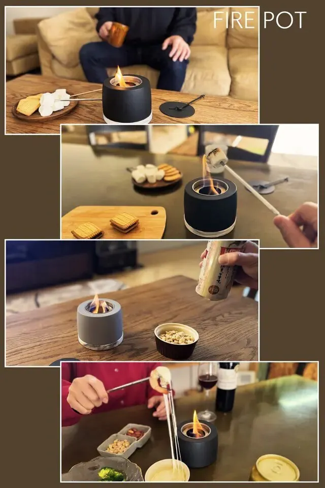 FIRE POTは室内でもアウトドアでも、どこでも手軽に焚き火を楽しめる設計です。
