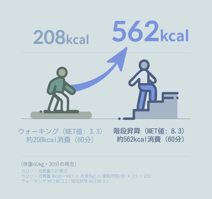 階段昇降運動が効果的と言われる理由は、その高い消費カロリーにあります。 ウォーキングの約2.5倍に相当するカロリーを消費でき、短時間で効率よく脂肪燃焼。ダイエット効果も抜群です。 さらに心肺機能を向上させ、持久力を高めることで疲れにくい体づくりをサポート。 日常生活での階段の上り下りが楽になり、活動的な毎日へとつながります。 下半身を引き締め、美脚やヒップアップ効果も期待でき、理想的なシルエットを目指すことができます。