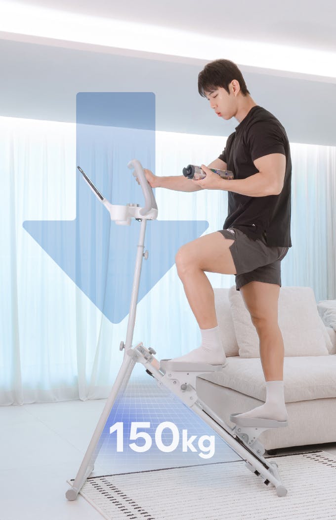 本体には衝撃吸収バンパー構造を採用し、ステップ時の衝撃音を大幅に低減。 マンションや夜間でも周囲を気にせず安心してトレーニングできます。 さらに膝への負担を軽減する設計で、関節を守りながら長時間の運動も快適。 静音性と安全性の両方を兼ね備えた構造だからこそ、日常に無理なく取り入れられます。 “静かで安心、膝にやさしい”新しいホームフィットネス習慣をサポートします。