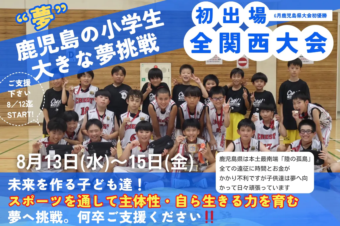鹿児島から広島までの遠征は、距離も費用も大きなハードルになります。移動費、宿泊費、食費…子どもたちの頑張りだけでは越えられない壁があります。