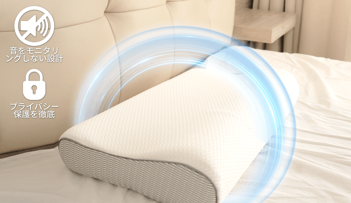 現在、いびき音を検出するため、集音センサーでリアルタイムで音をモニタリングするスマート枕が主流です。しかし、「ずっと音がモニタリングされている気がして、落ち着かない」、「プライバシー侵害にならないかって思うと怖くて不安になり、逆に眠れない」と思っている方も少なくないでしょう。また、音で感知するため、自分がいびきをしないのに、隣の人のいびき音を検知して自動的に動き出してしまう恐れもあります。