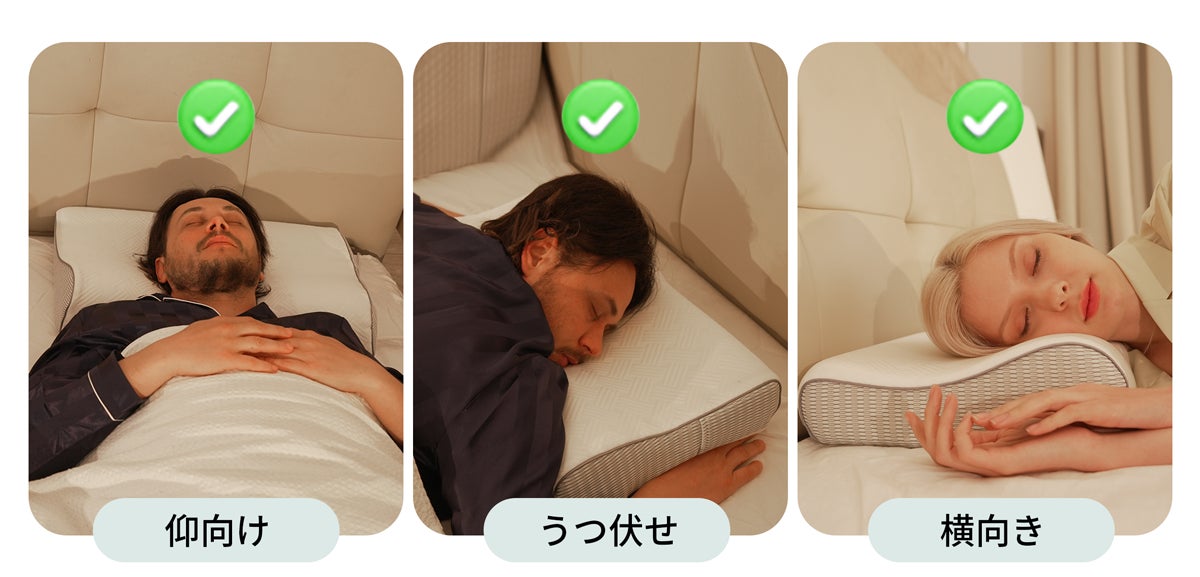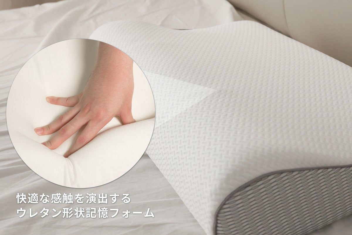 さらに、人間工学に基づくデザインによりあごの位置を上げて、より自然な寝姿勢になり、首や頸椎の緊張をサポート。