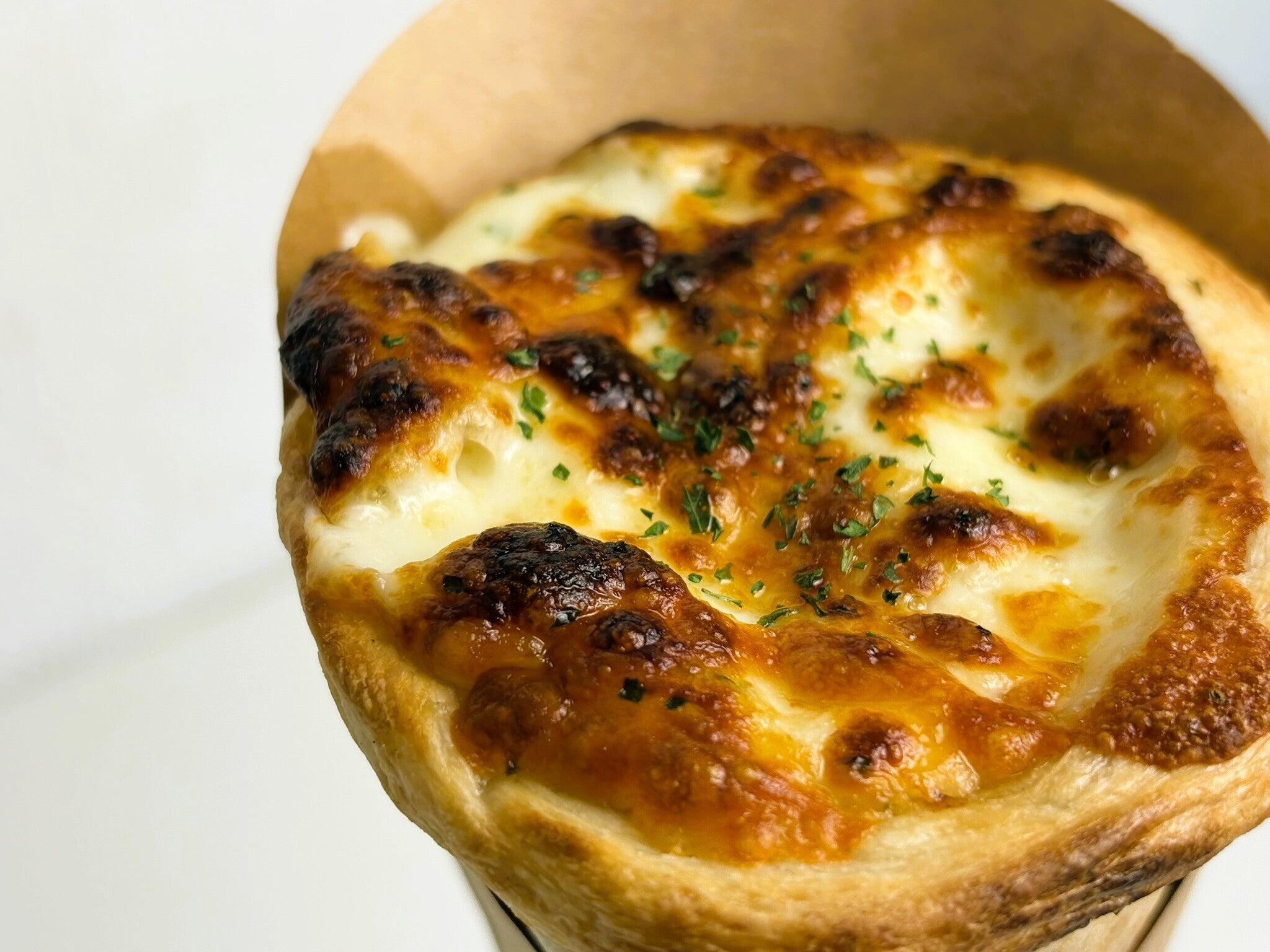 3種のチーズをふんだんに使用し、一口かじれば香ばしいチーズの香りがふわっと広がる。