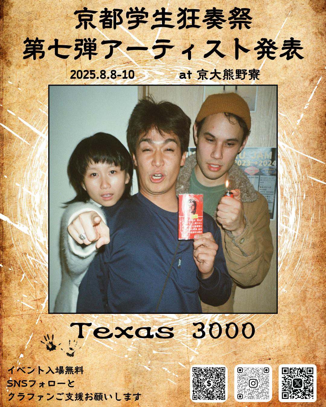 第7弾アーティストはtexas3000です!