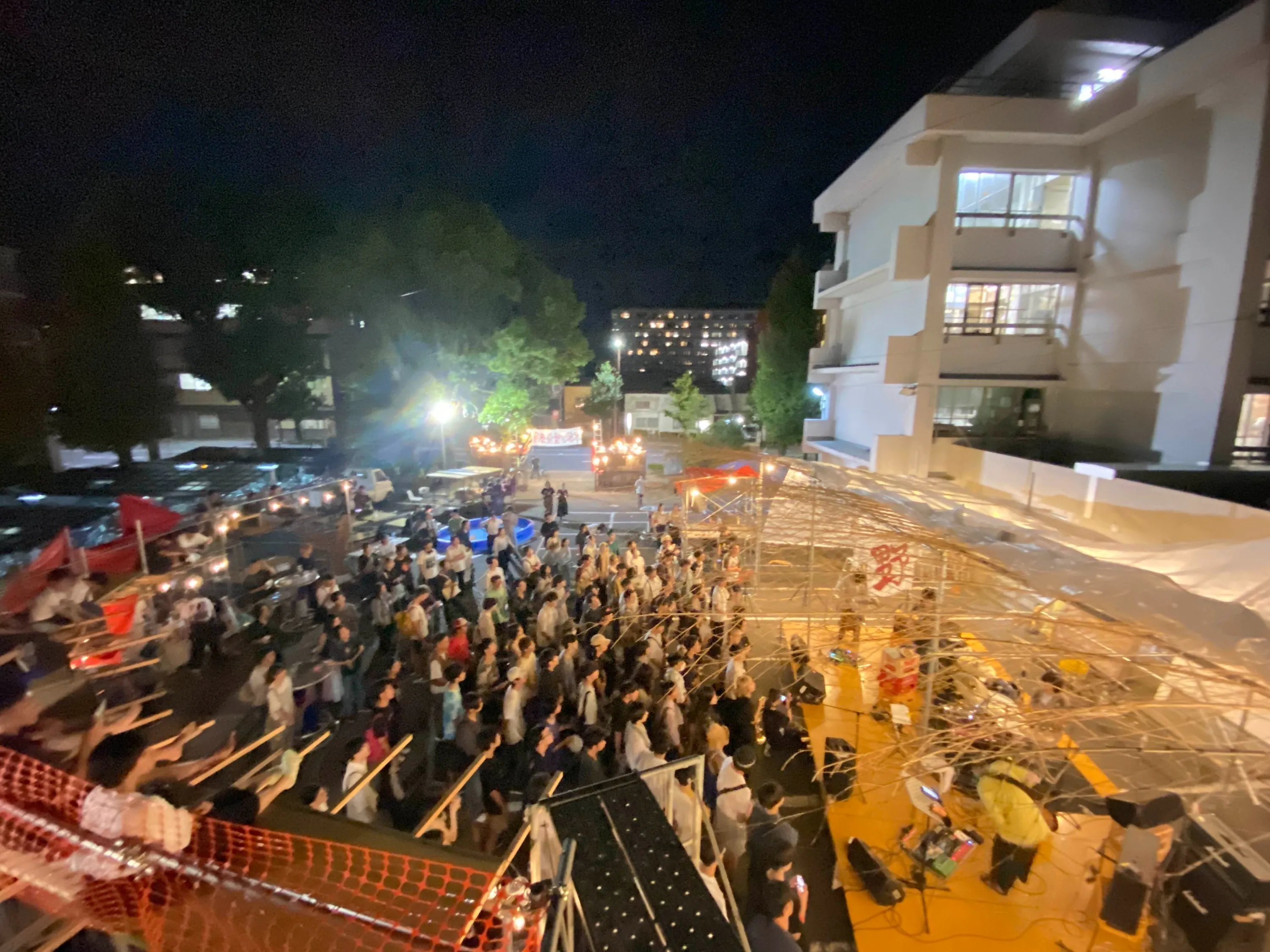 駐輪場に作る幻野ステージ(キャパ400人)と食堂にステージを立てる食堂ステージ(キャパ200人)を想定しています。また、昨年の街宣車ステージのようなミニステージも立てる予定です。機材については現在検討中です。