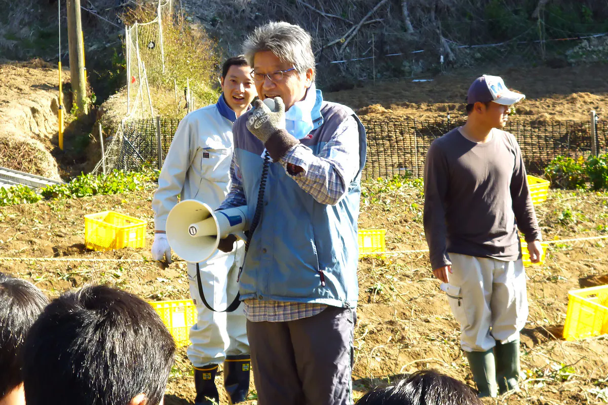 白芋収穫に立ち会う、在りし日の白石徹さん(ご遺族提供)