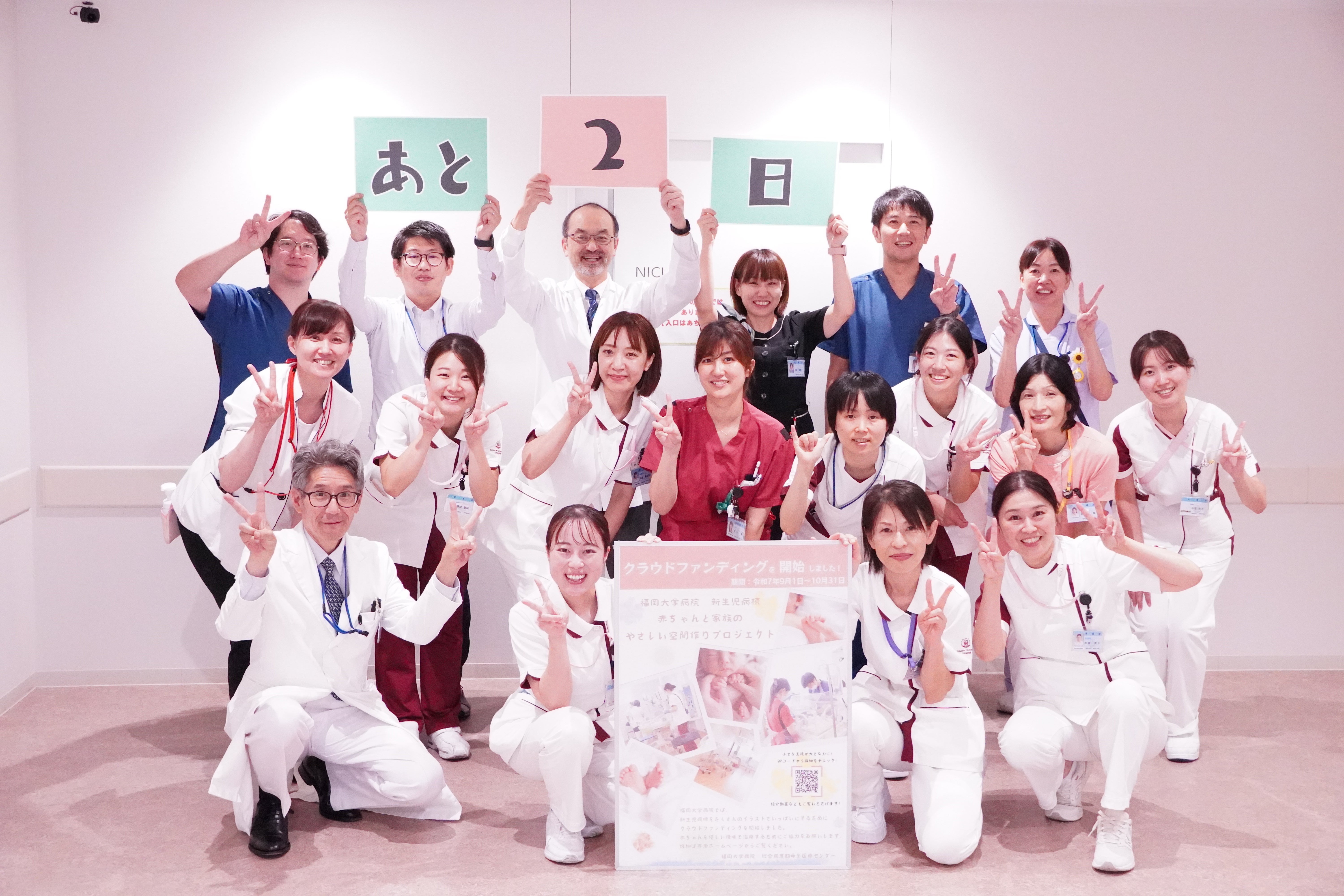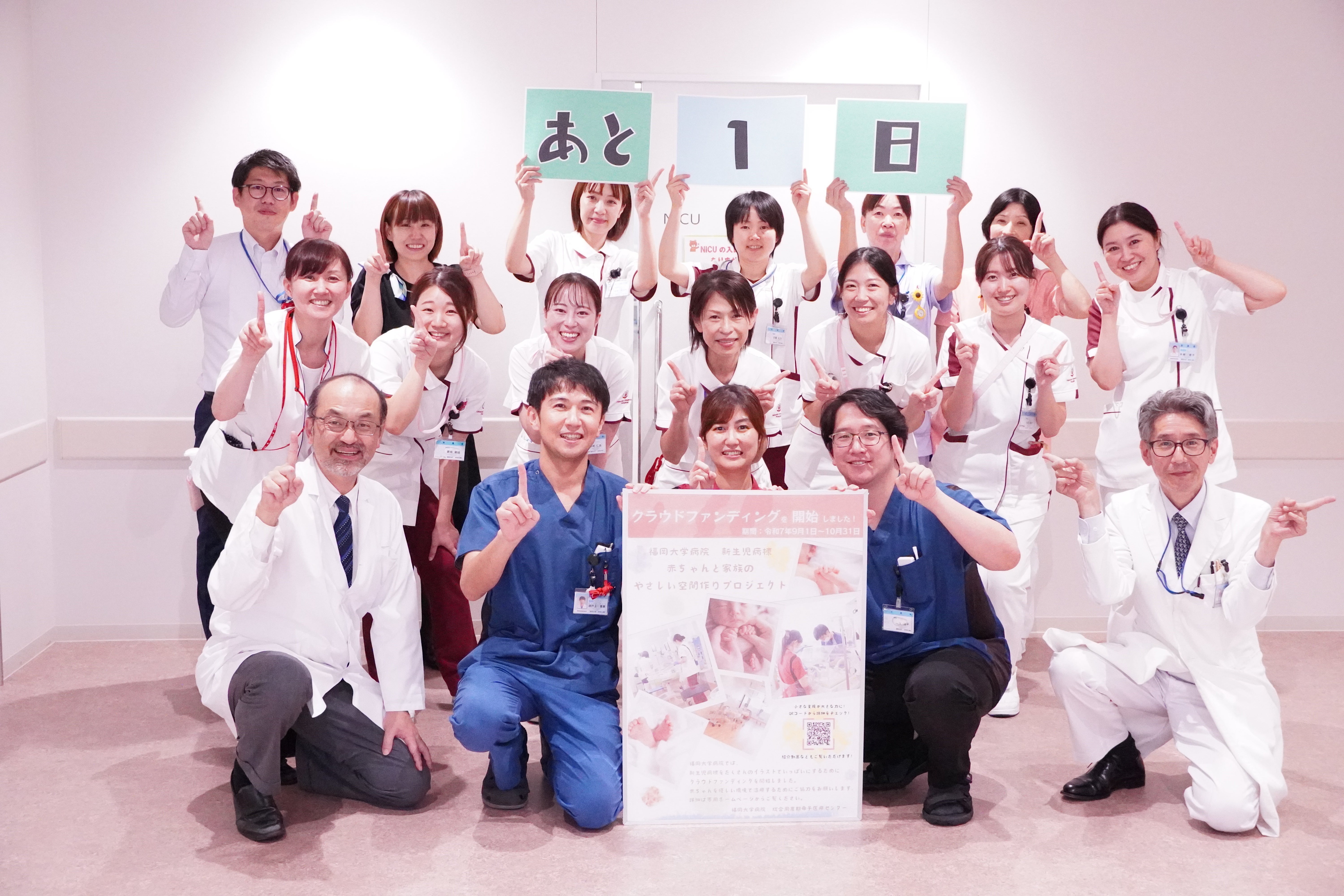 このたびは「赤ちゃんと家族の“やさしい空間”づくりプロジェクト」に 温かいご支援を賜り、心より御礼申し上げます。 皆さまのお力添えにより、目標を大きく超えるご支援をいただき、 NICUの環境改善に向けて大きな一歩を踏み出すことができました。現在、壁紙や装飾の準備を進めており、赤ちゃんとご家族が少しでも安心できる空間を整えるため、スタッフ一同心を込めて取り組んでおります。施工の様子や完成後の写真も、今後こちらでご報告させていただきますので、ぜひ楽しみにお待ちください。また、院内にクラウドファンディング達成のポスターを掲示したところ、 患者さんから「よかったね」「がんばってね」という温かいお声をいただきました。皆さまのご支援が、院内にも前向きな空気を広げていることを実感しています。なお、リターン(お礼状、寄付金領収書、感謝状等)送付にあたり、住所情報が不明または確認が必要な場合がございます。その際は、福岡大学財務課より個別にメッセージ、メール、またはお電話で確認をさせていただくことがございますので、何卒ご理解とご協力をお願い申し上げます。引き続き、赤ちゃんとご家族に“やさしい空間”を届けるため、 スタッフ一同尽力してまいります。今後とも温かいご支援とご声援をよろしくお願いいたします。福岡大学病院 赤ちゃんと家族の“やさしい空間”づくりプロジェクト一同
