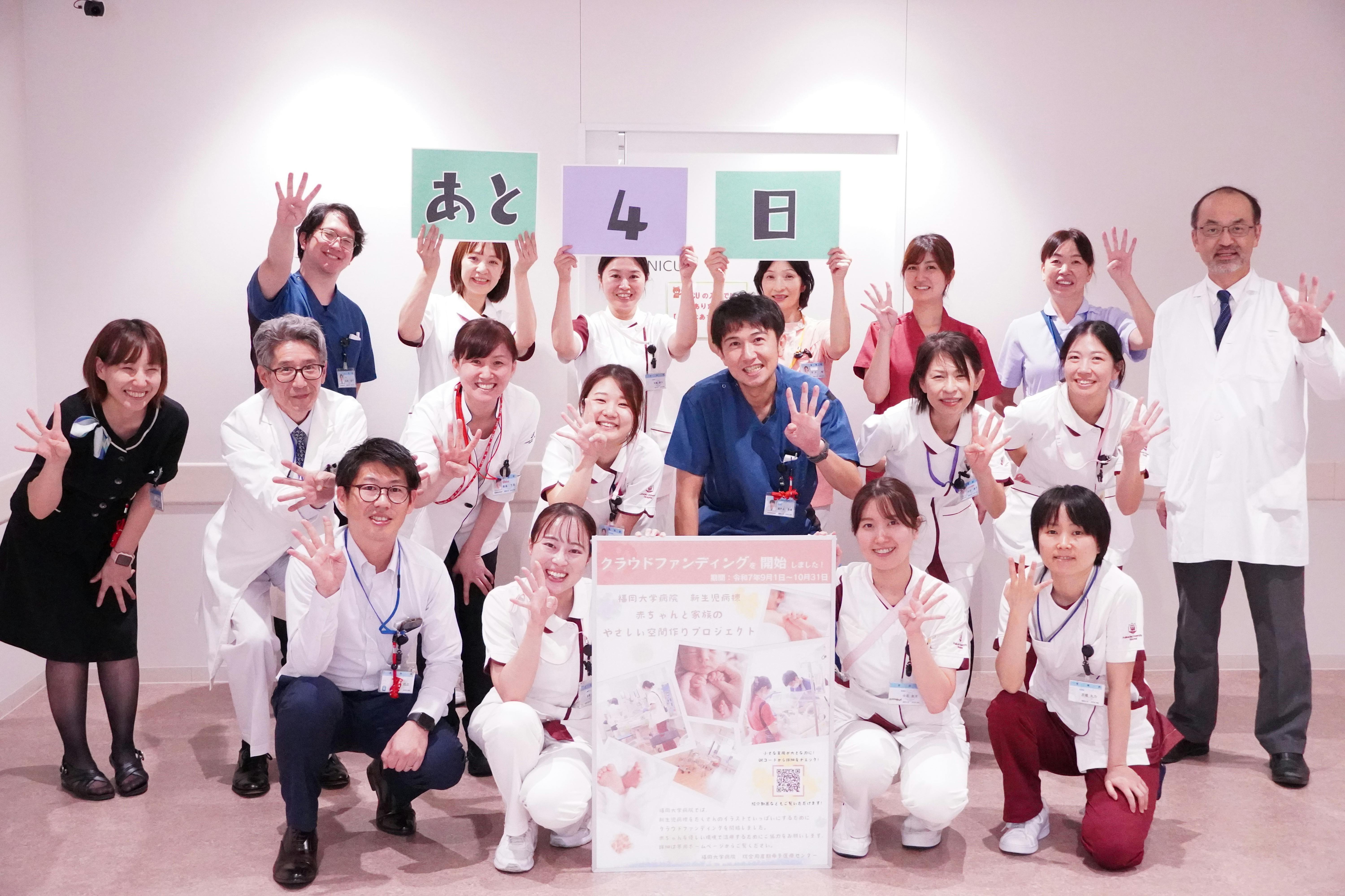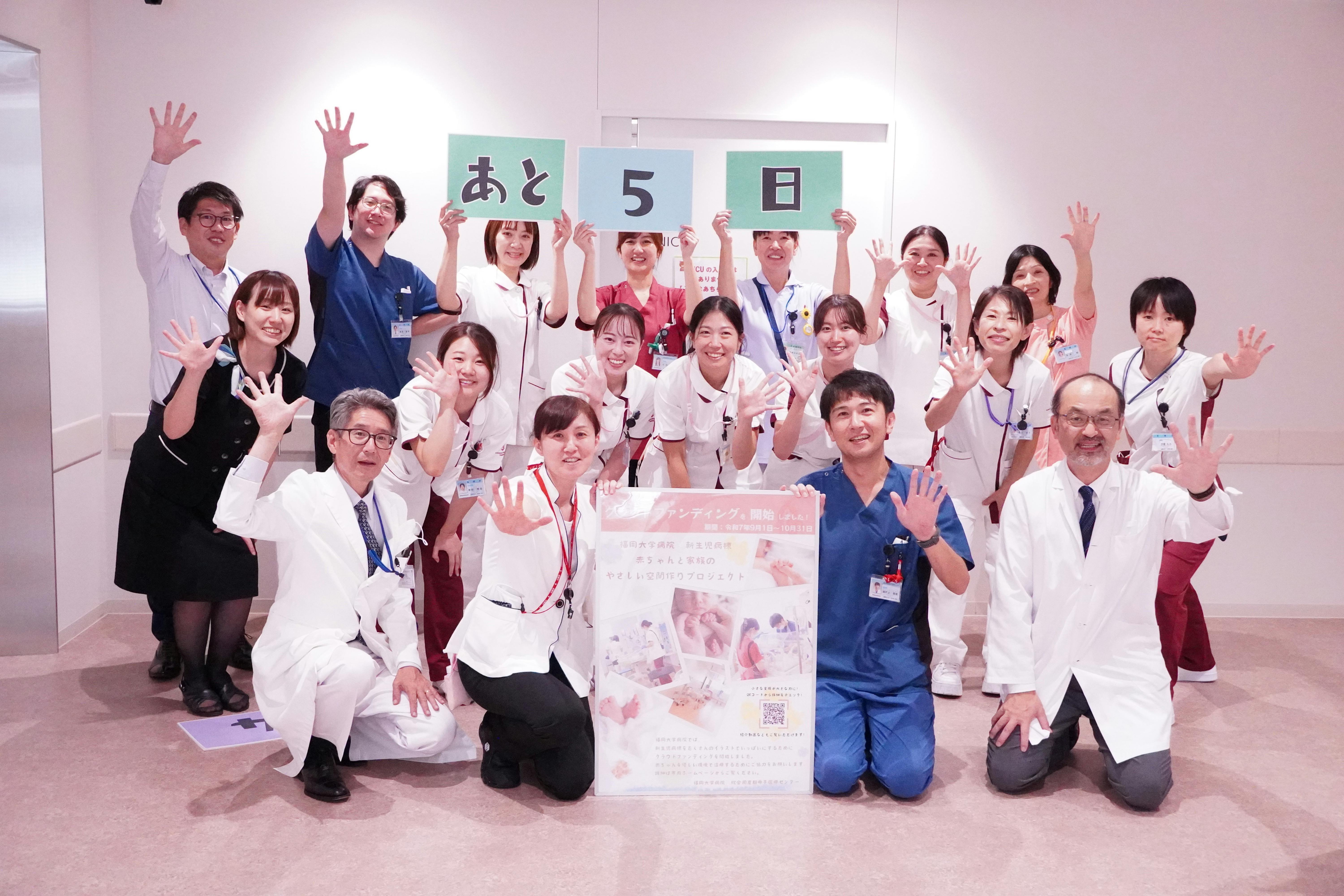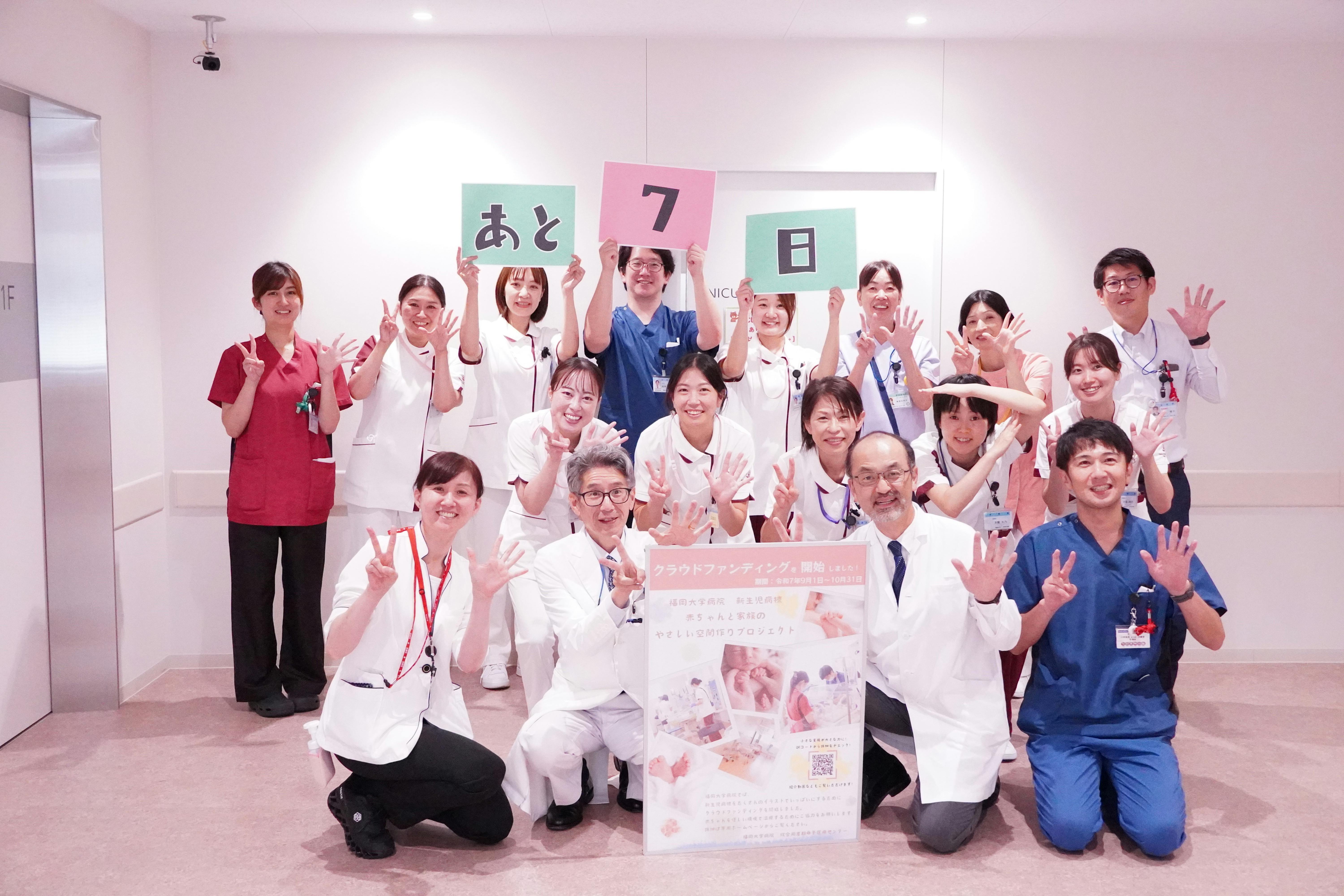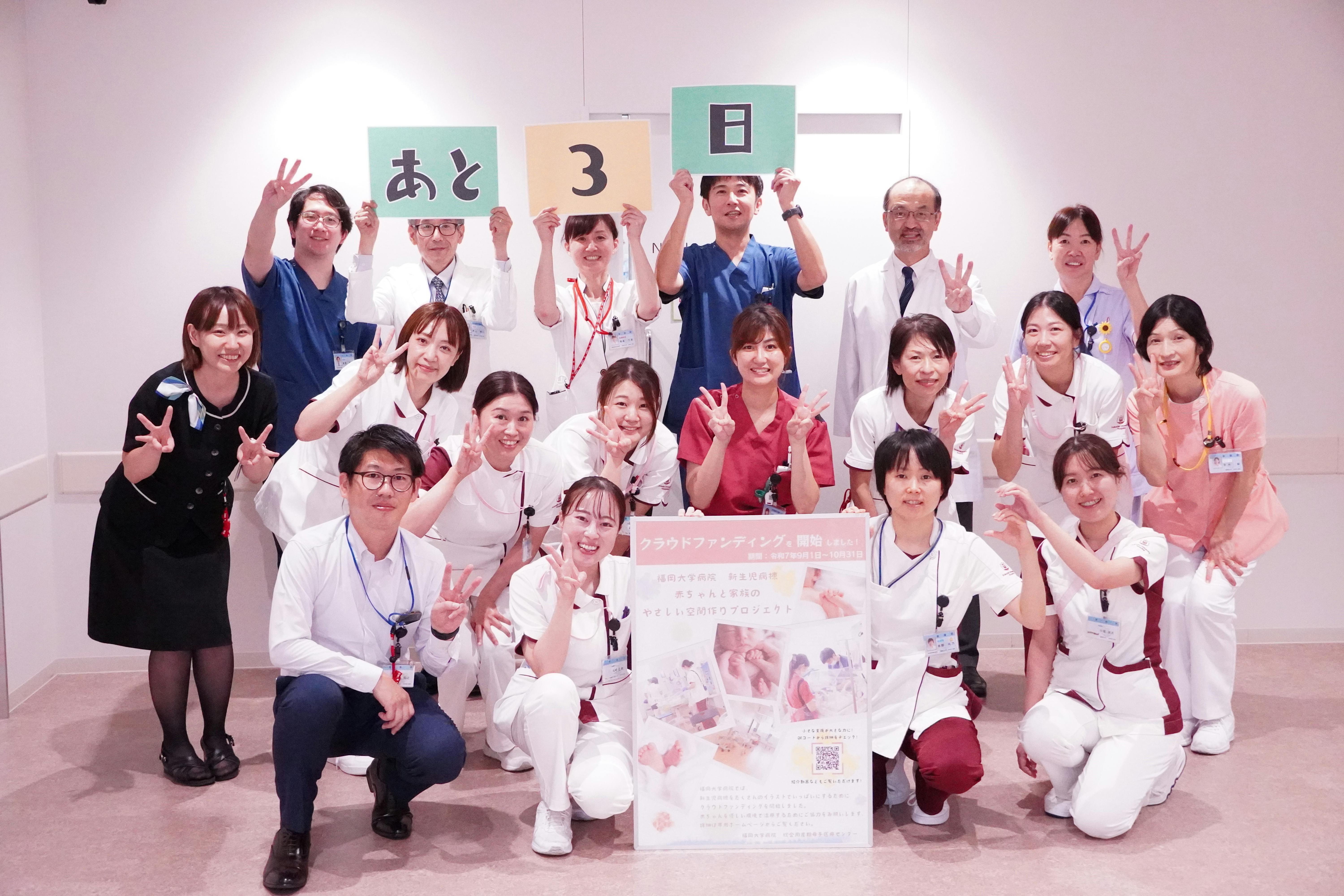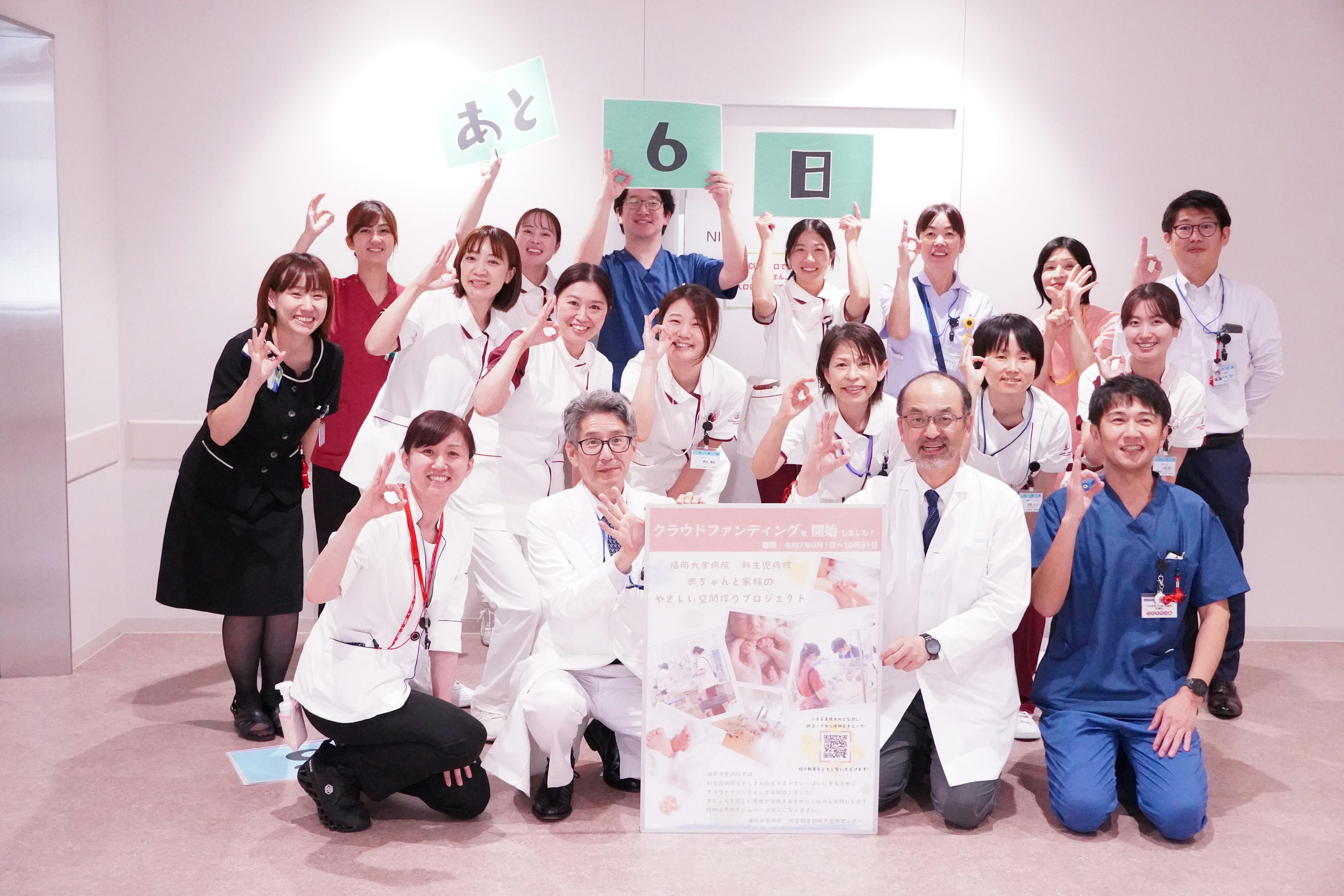 『赤ちゃんと家族の“やさしい空間”づくりプロジェクト』には、地域の医療関係者、福岡大学医学部の同窓会や卒業生の皆さまからも、数多くの温かいご支援をいただいております。「母校の取り組みを応援したい」「医療現場に少しでも貢献できれば」そんな思いのこもったご支援が、プロジェクトの大きな力となっています。皆さまの応援は、現場で働くスタッフにとっても大きな励みです。医療の現場を経験された方々からの支援は、私たちの活動に深い理解と共感をもたらしてくれています。クラウドファンディング終了まで、残りわずかとなりました。最後まで、どうぞ温かく見守っていただけますと幸いです。