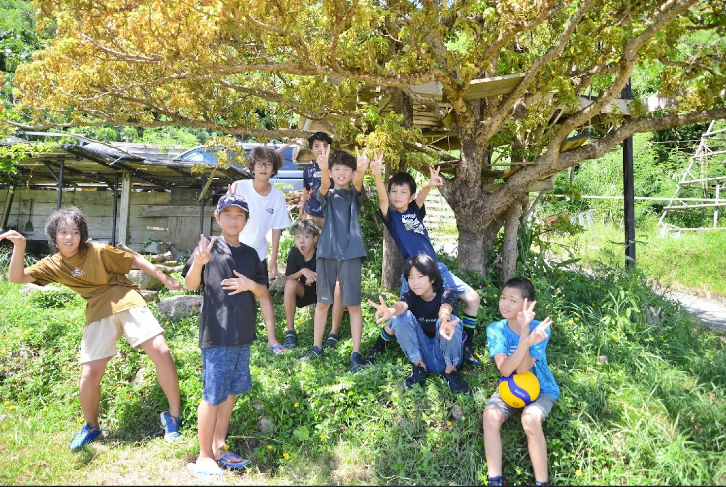 ここでは、ぼくたちは自然の中で「自由に、のびのびと、自分のやりたいことを大切に」過ごしています。海で泳いだり、滝の水で遊んだり、魚やエビを捕ったり、川を探検したり、様々な道具を使って物つくりをしたり…。ときには畑で野菜を育て、動物を世話し、命の大切さを学びながら生活しています。そして不定期で行われるイベントにはこども達が自分で経営するお店を開く起業体験なども行っています。