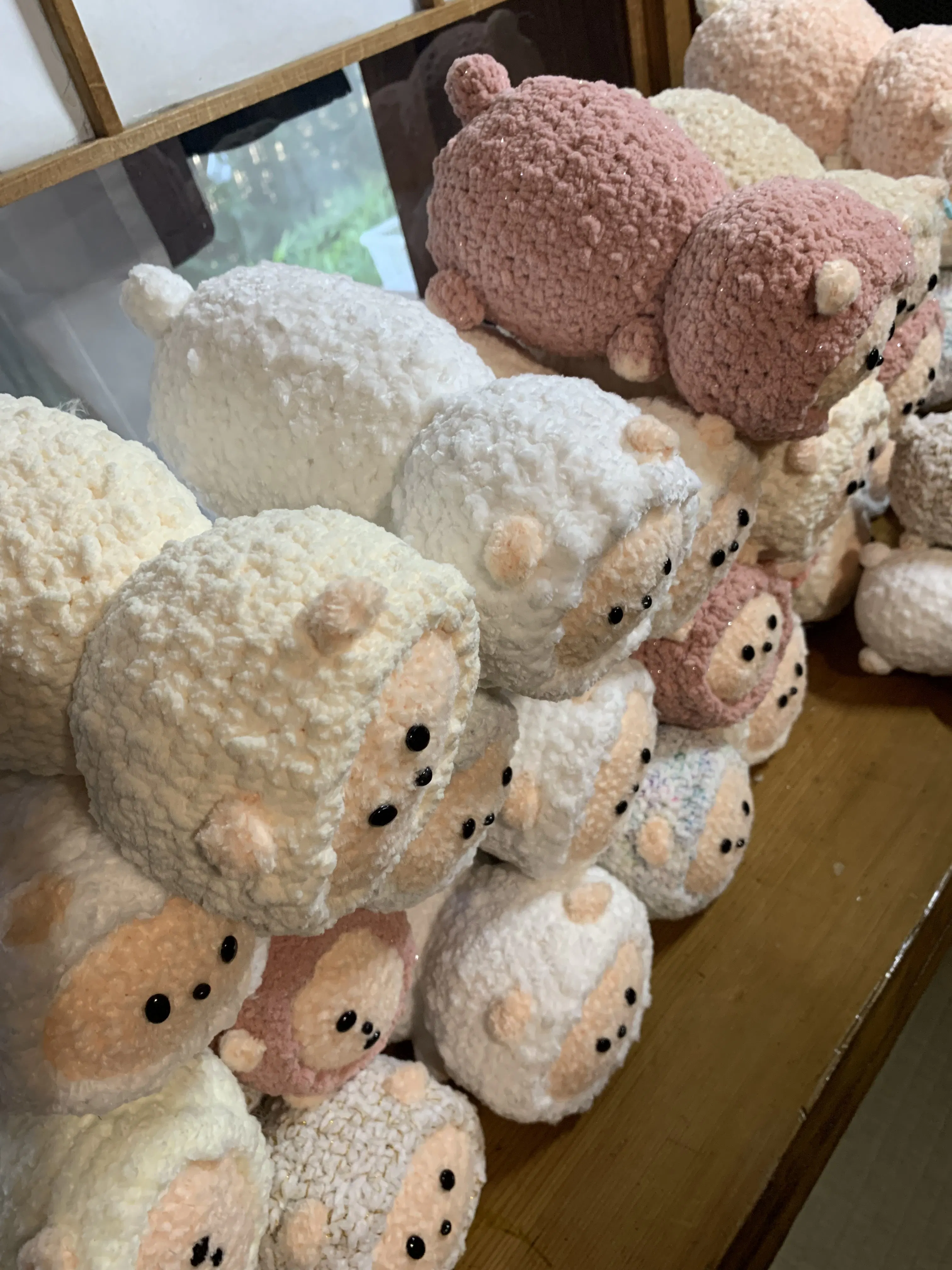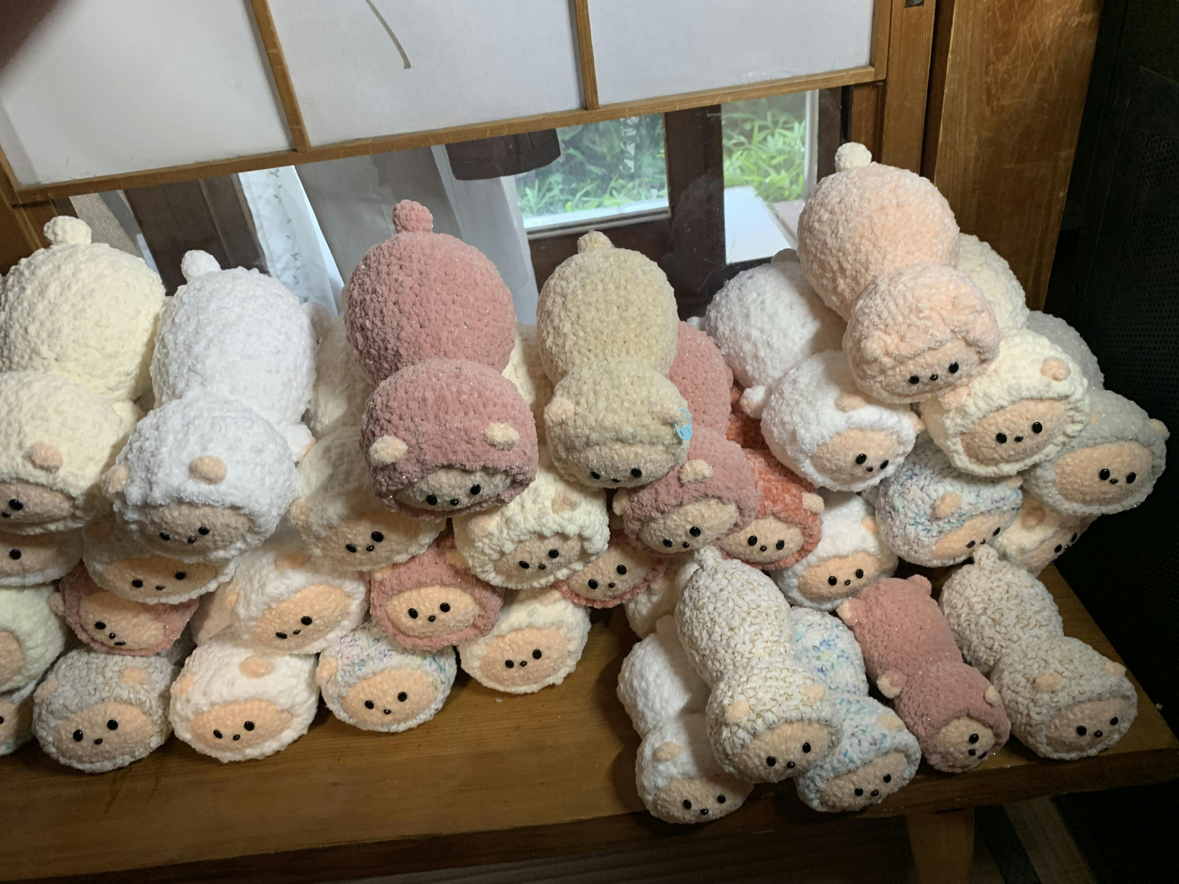 アトリエを改装…と言いたいのですが、整理整頓のために、整理中なので、あっちやこっちやに羊さんが積まれています。箱詰め中の羊さんもあります。