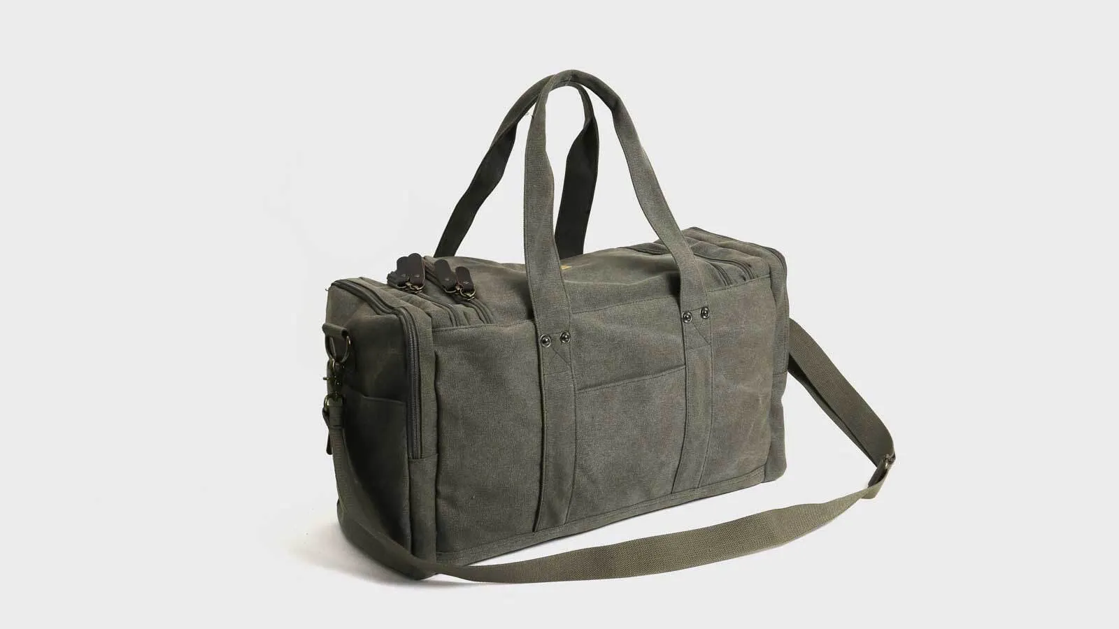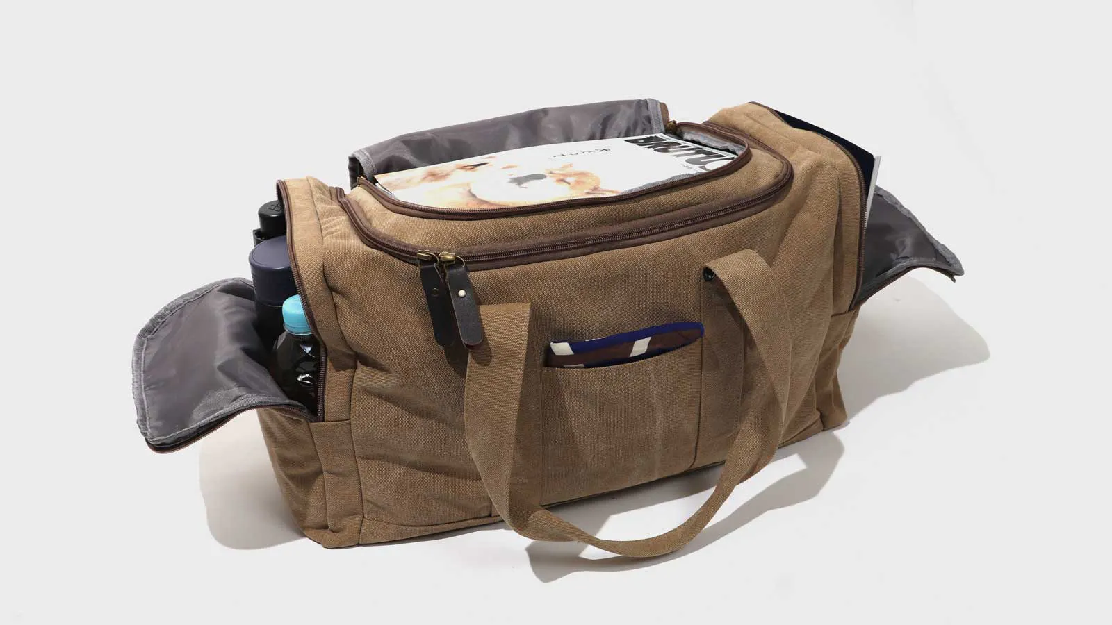 コンパクトながらスーツケース並みの大容量!小物も収納8ポケット軽量帆布ボストン