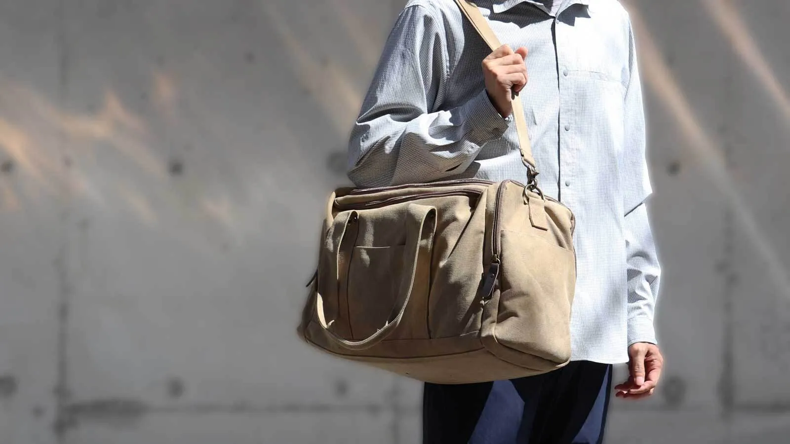 荷物が重いと移動だけで大変。せめてバッグ自体は軽量にしたく、軽くても丈夫な帆布生地を採用しました。