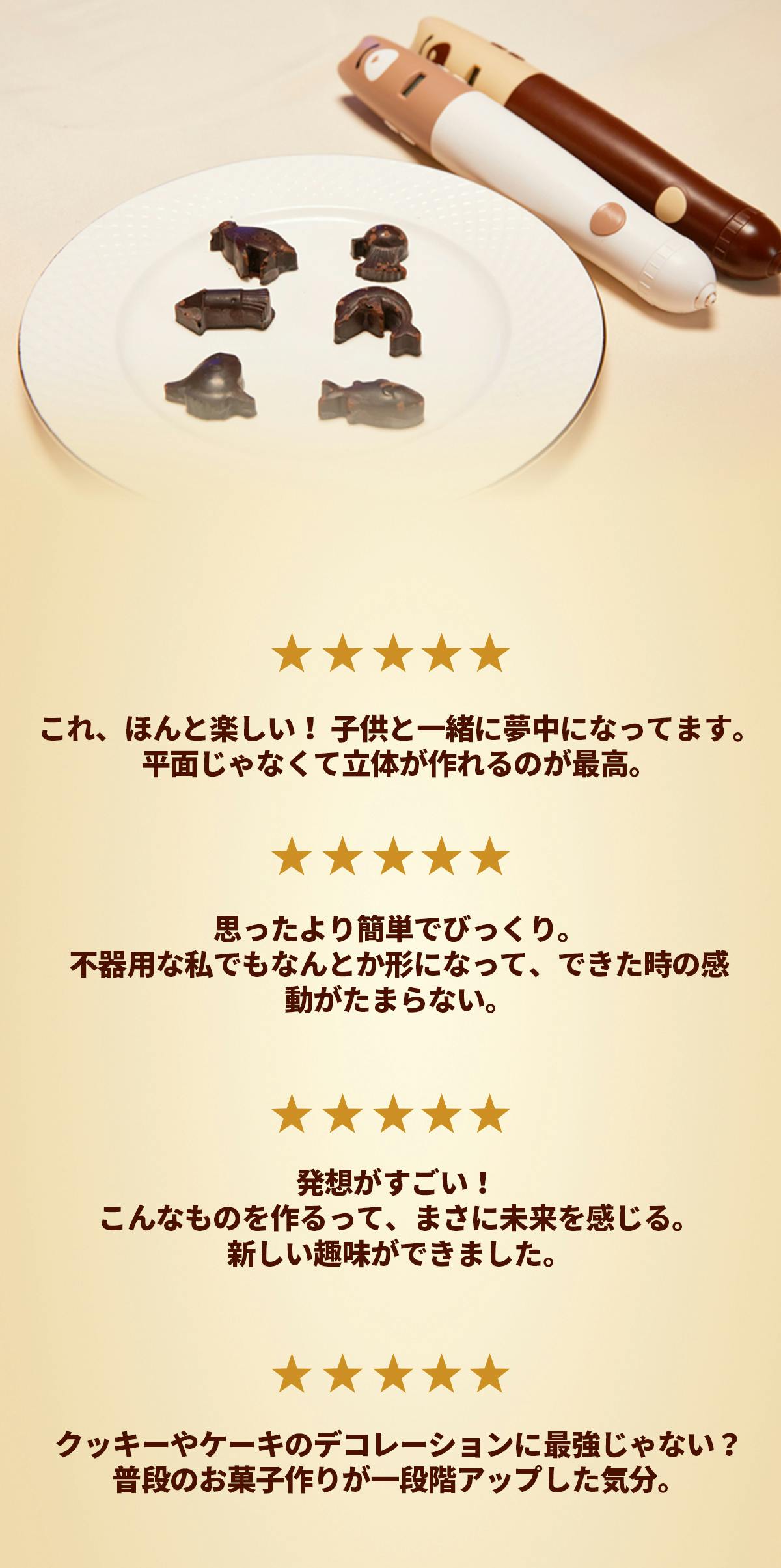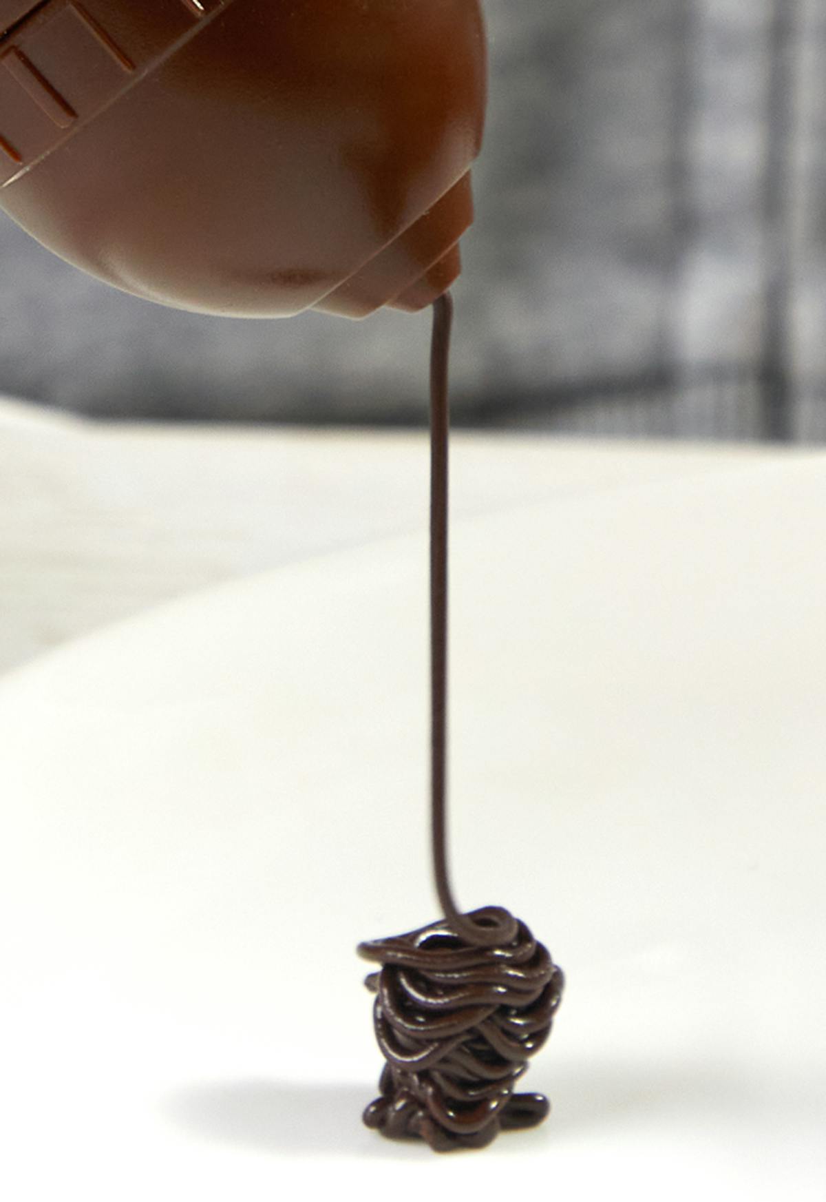 ②型やテンプレートがなくても、3Dプリントペン感覚でチョコレートアートを創作可能