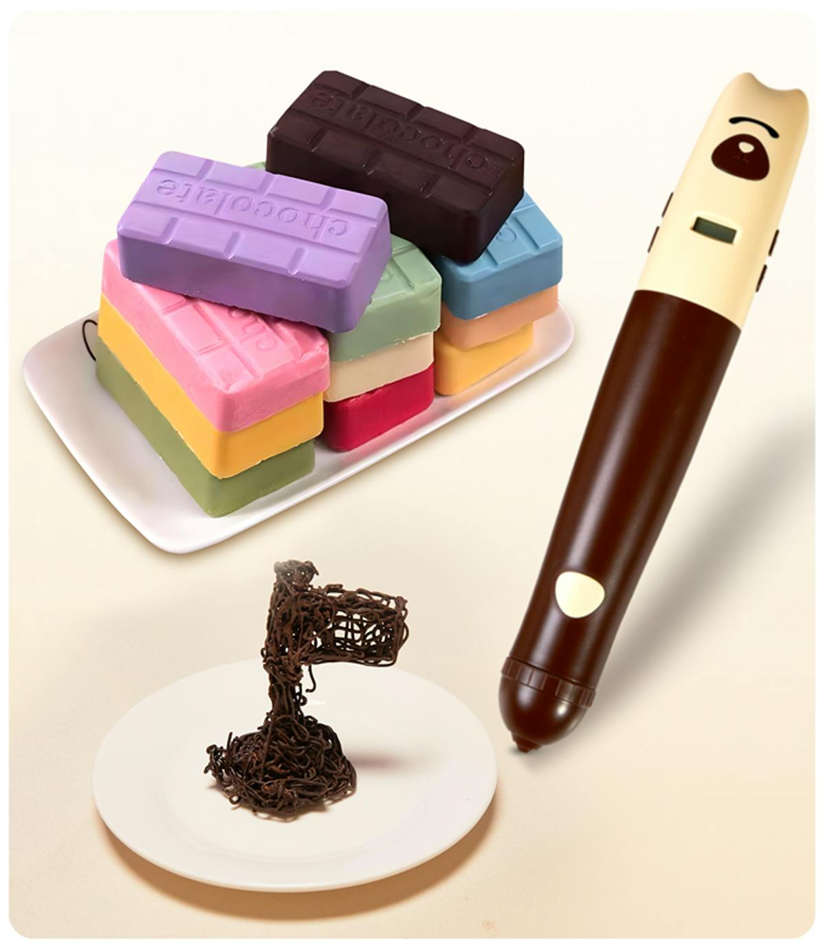 ①世界初の立体造形可能な3Dチョコレートプリントペン