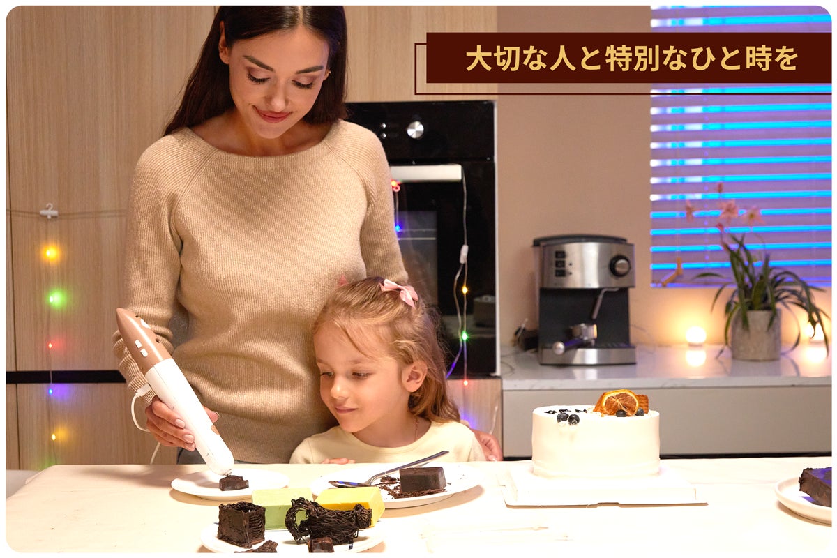 「ChocoDream(チョコドリーム)」は、あなたのあらゆる想像をチョコレートで形にする、立体的に文字や模様が描ける世界初の3Dチョコレートプリントペンです。型やテンプレートに頼らず、3Dプリントペン感覚で自由にチョコレートアートや立体作品を作れるのがポイント!3Dの力でお菓子づくりの楽しさがぐっと広がり、今までにないお菓子づくり体験を!