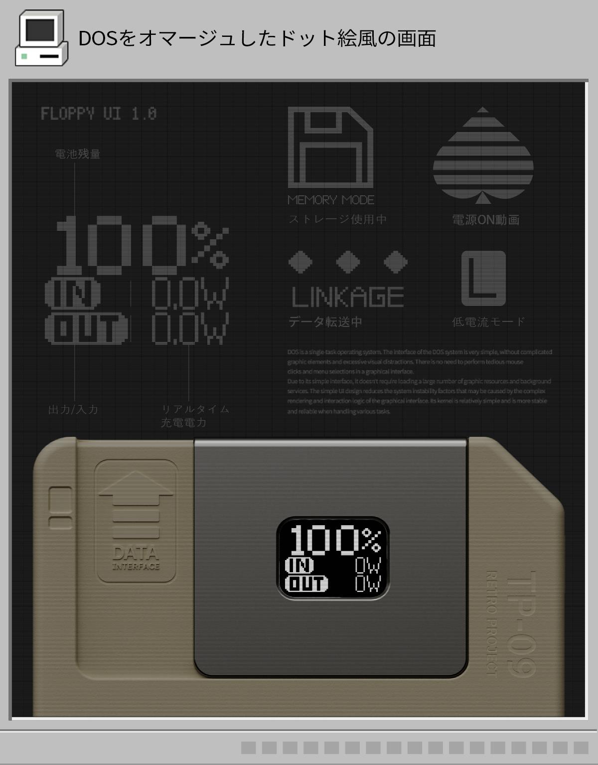 「TP09」はあの頃の感動を再び感じていただけるように、フロッピーディスクをモチーフに設計され、色も世界初のフロッピーディスクを搭載したPCの一つ「IBM 5110」の白を採用、あの時代の風格を忠実に再現。