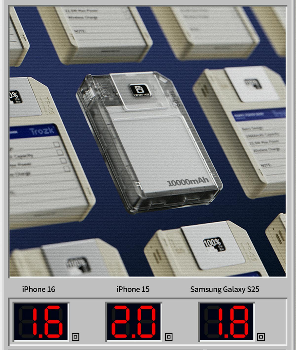 0.66インチディスプレイを搭載、電池残量や充電速度などが一目瞭然!ディスプレイのないモバイルバッテリーのようにまだ残量があるかどうかを心配することはありません。