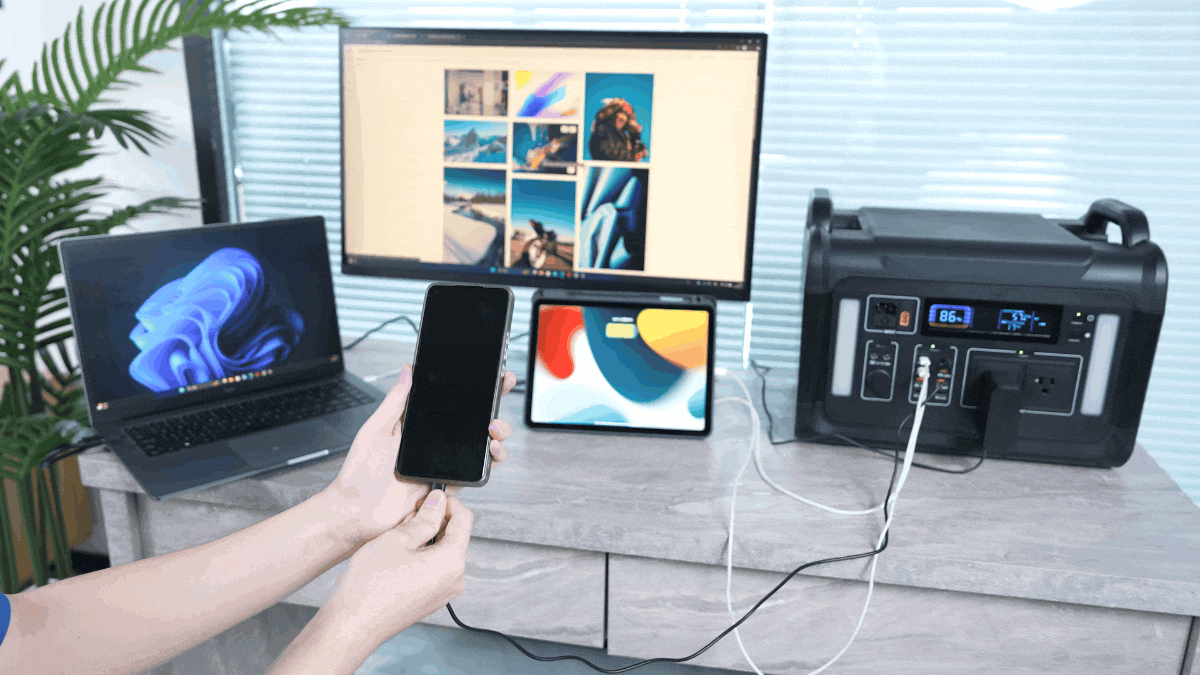 コンパクトな筐体でありながら、最大出力は驚きの2,400W!(※瞬間最大電力は4,800W)ノートPCやミキサーなどの小型の電気機器を複数台同時に充電することはもちろん、電動ハンマーや電動チェーンソーのような大型電気機器を稼働させることも可能です!DIY作業・庭木のお手入れにも最適!💪