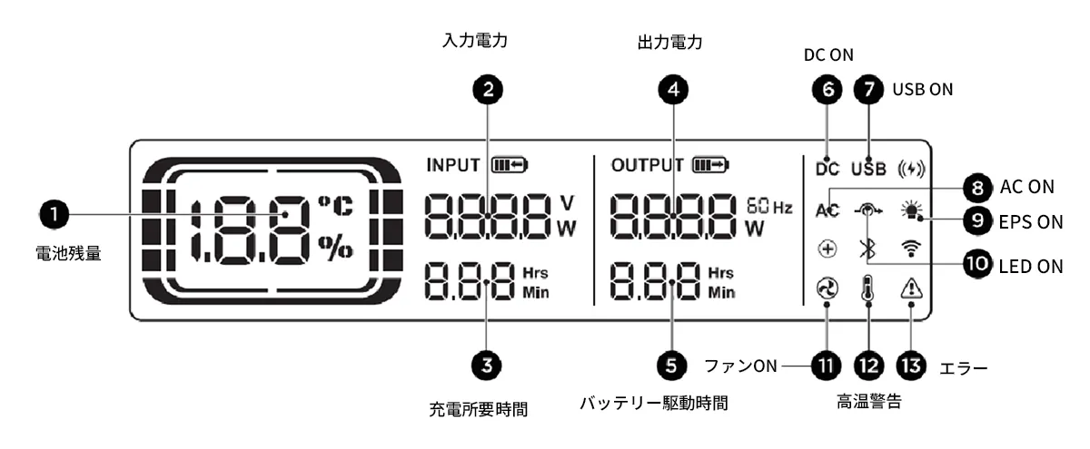 スマホにも負けないくらいの大型LCDディスプレイを搭載。放電中のパートや電池残量、残り時間、出力電力などの情報が一目瞭然!📺