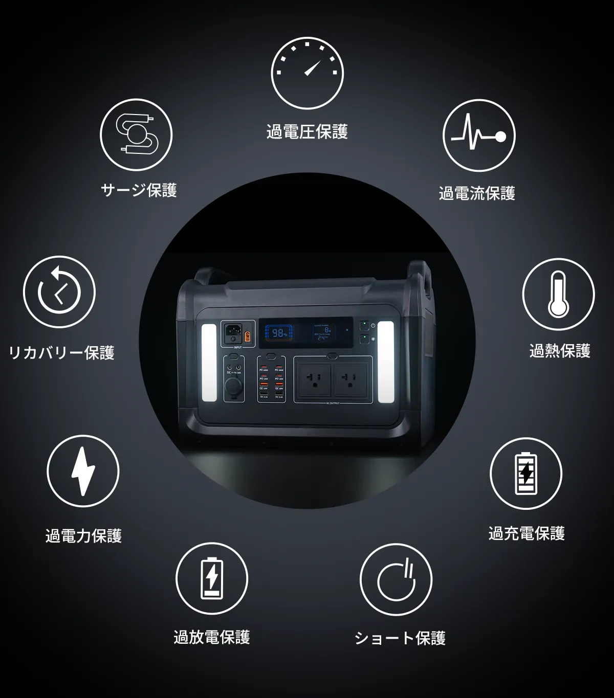 電気製品、特にポータブル電源のような電力を貯蔵するデバイスにおいて、安全性は非常に重要です。「SodiBox」は過電圧保護、過電流保護など合計9つの安全保護技術を搭載しており、安心してお使いいただけます。🛡️
